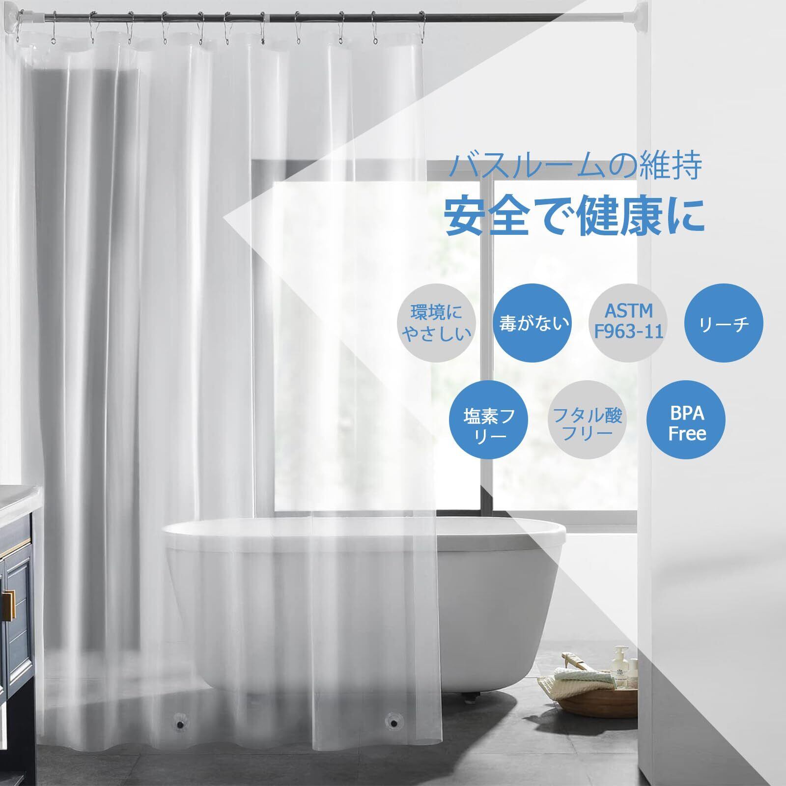 【環境に優しいEVA素材】透明なバスルームライナーは、環境に優しいプラスチック素材EVAで作られており、無色無臭、柔らかくて丈夫です。 シャワーカーテンライナーは、あらゆる装飾にフィットし、バスルームを引き立てる素晴らしい外観を誇ります。