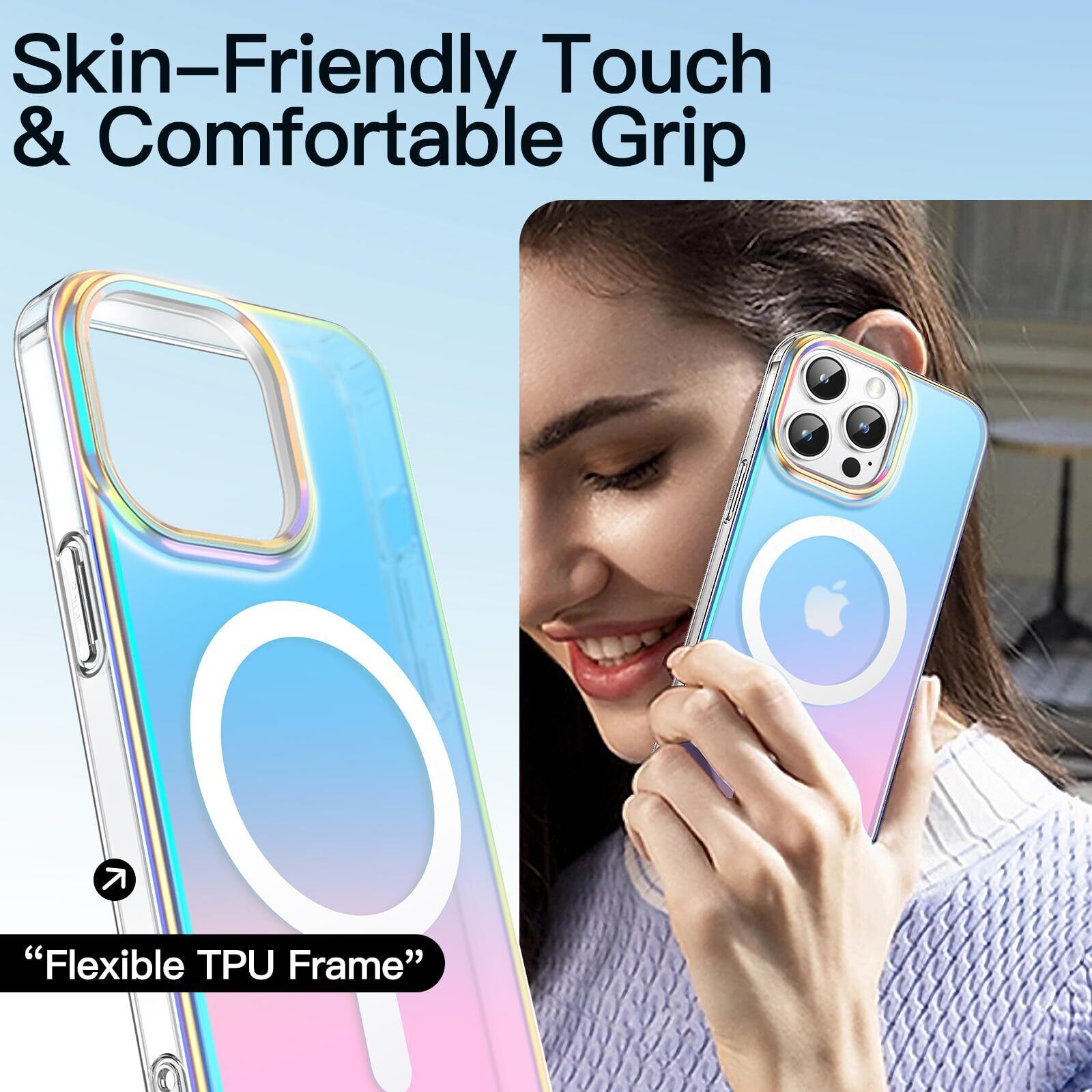 JETech iPhone 14 Pro Max 6.7インチ用 虹色ケース MagSafe対応 かわいい ユニーク 美しいデザイン カラフルな蛍光 半透明バック 耐衝撃スマホカバー
