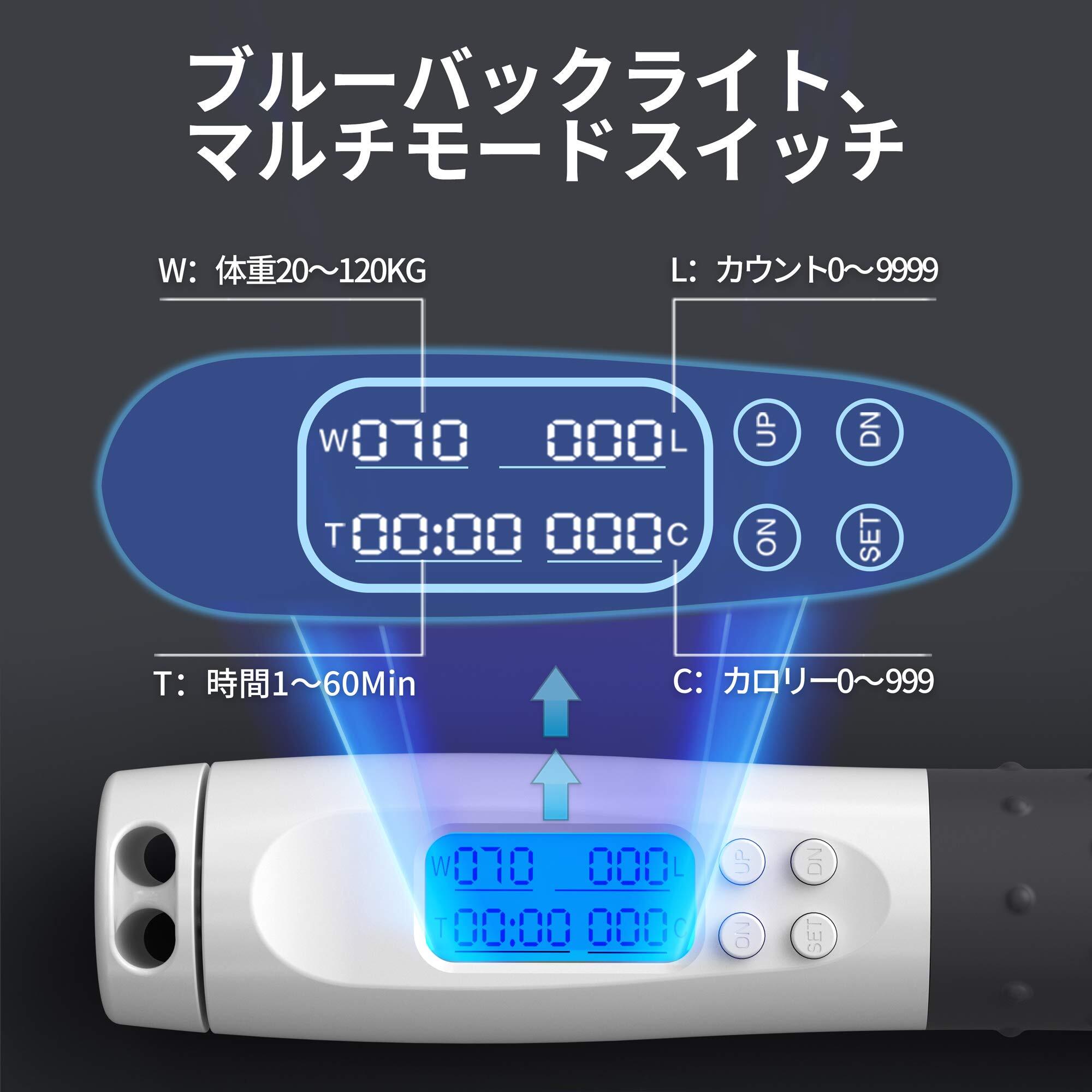 【精密なトレーニングを支え、カウントを正確に行う】PROIRON縄跳びは、あなたの跳躍回数を正確にカウントし、体重、回転数、時間、消費カロリーを表示します。ダブルホール磁気センサー搭載で、必要に応じてカウントダウンやタイマー設定が可能です。