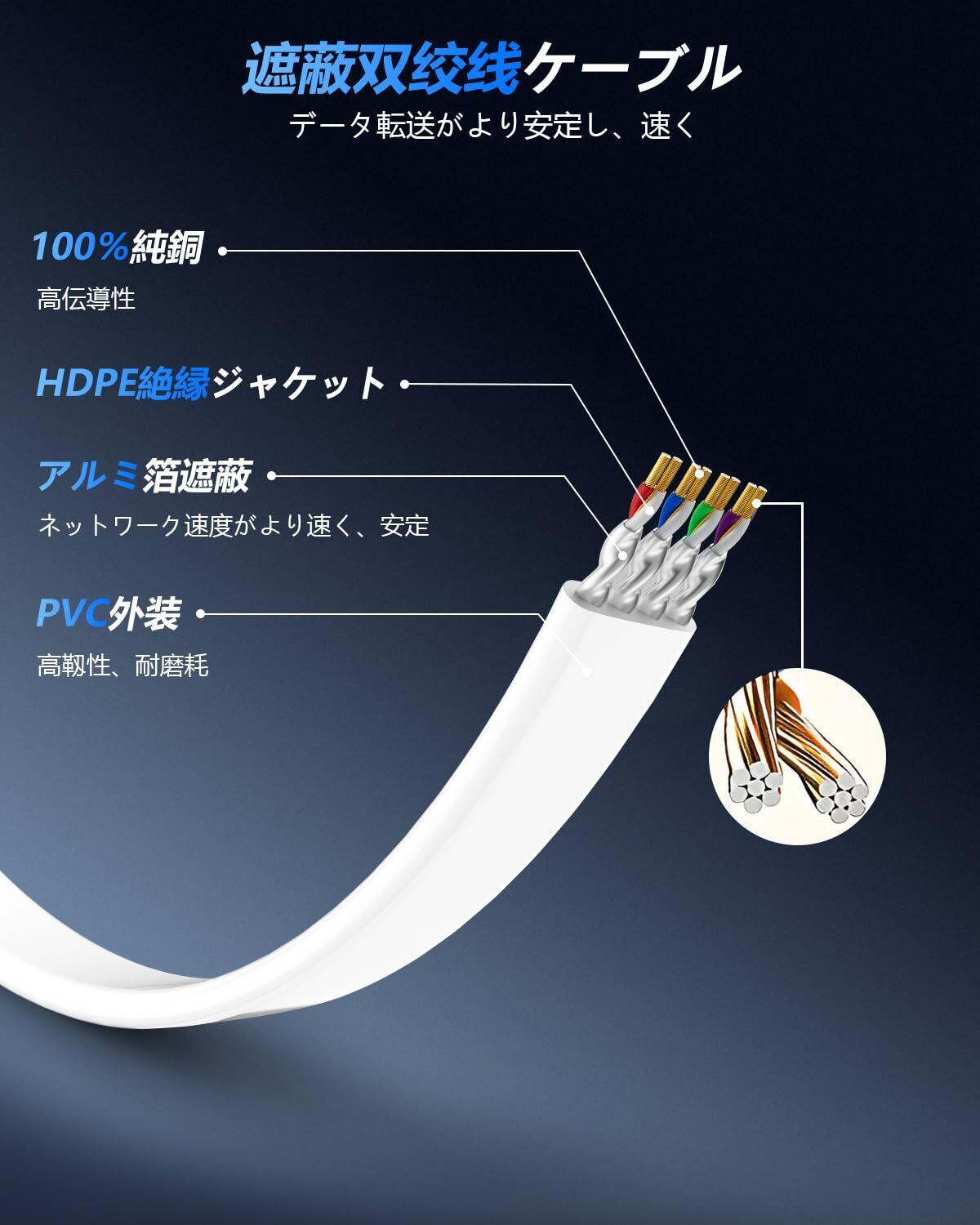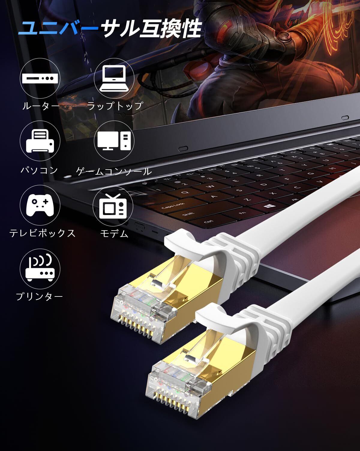 広範な互換性: 既存のCat6、Cat6a、Cat7 LANケーブルなどと互換性があります。両端にRJ 45インタフェースがあり、ルータ、スイッチ、スマートテレビ、パソコン、プリンター、ゲーム機などの設備に適している