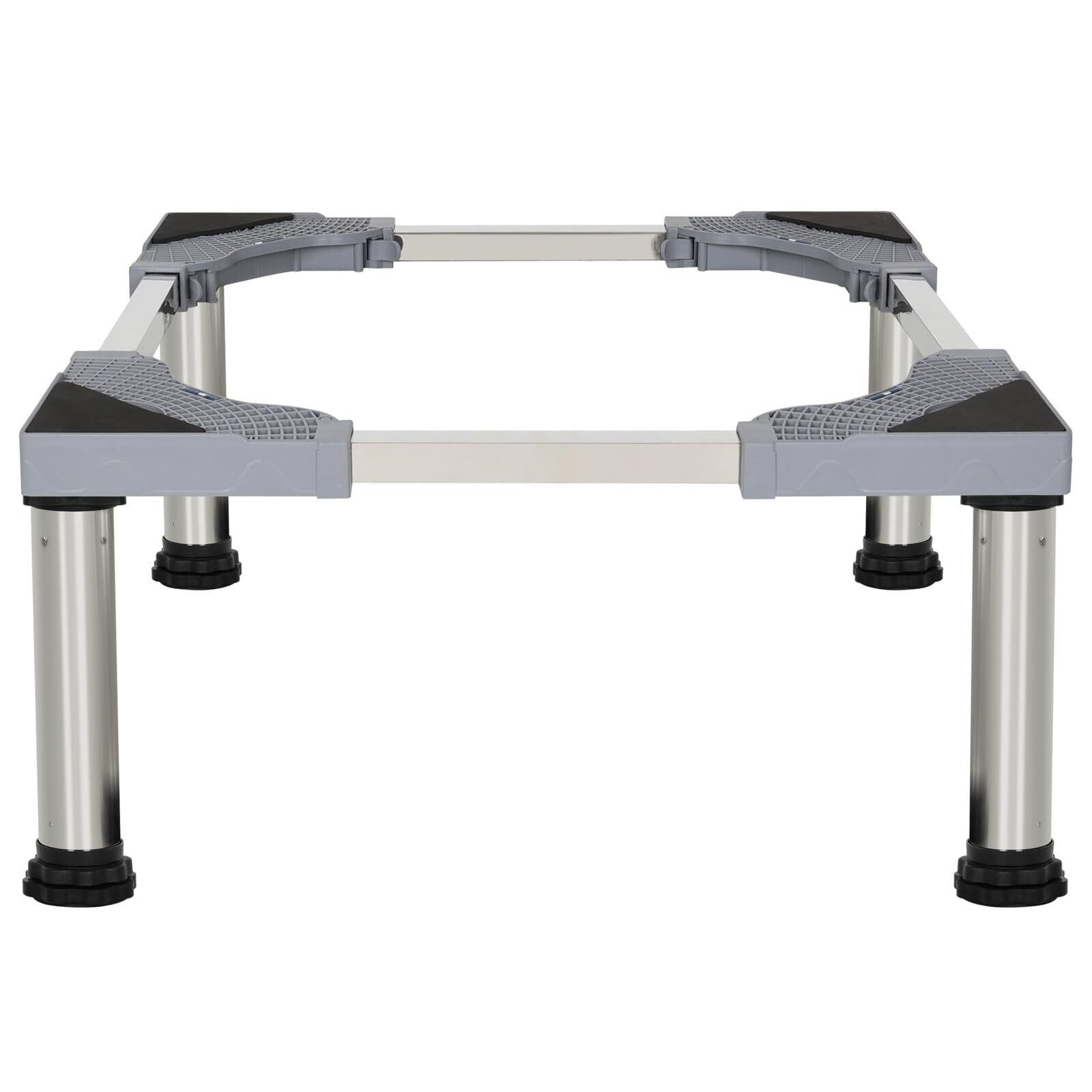 製品寸法: 4足。 調節可能なサイズ:41-63 cm(長さ/幅)、28-31 cm(高さ)。 最大耐荷重:150 KG。 底を高くして排水しやすい洗濯機スタンドです。 または、家電を安定して置くことができ、騒音を軽減するために底面を平らにします