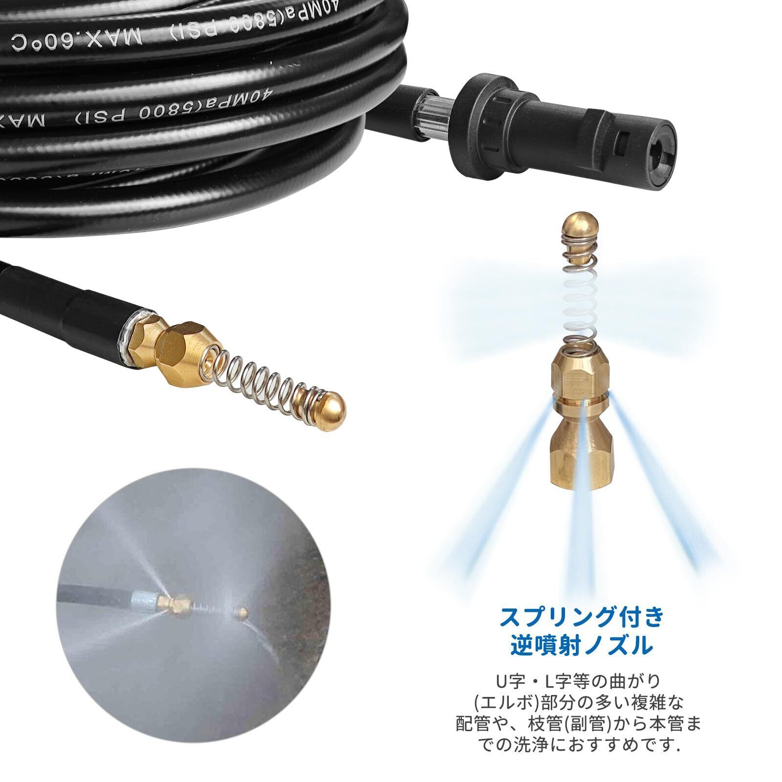 【2022最新】NAMOTEK パイプクリーニングホース ケルヒャーに対応 パイプクリーナーホース 配管洗浄 スプリング型 逆噴射ノズル15M K2 K3 K4 K5 K6 K7に適用 | allstore3
