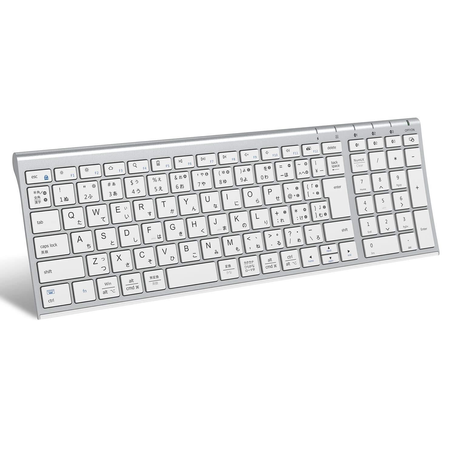 【人気商品】iClever キーボード Bluetooth ワイヤレス パンタグラフ 日本語JIS配列 3台同時接続可能 テンキー付き フルサイズ 超薄型 静音設計 充電式Type-C 無線 コンパクト ラップトップ パソコン用 スマホ PC iPad用Windows Mac iOS Android対応 IC-BK22 シルバー
