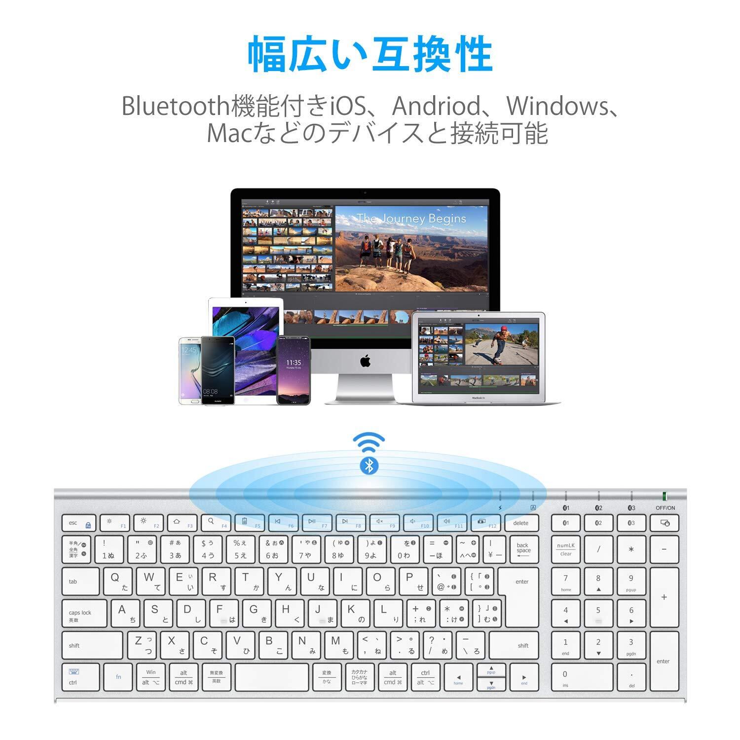 iClever キーボード Bluetooth ワイヤレス パンタグラフ 日本語JIS配列 3台同時接続可能 テンキー付き フルサイズ 超薄型 静音設計 充電式Type-C 無線 コンパクト ラップトップ パソコン用 スマホ PC iPad用Windows Mac iOS Android対応 IC-BK22 シルバー