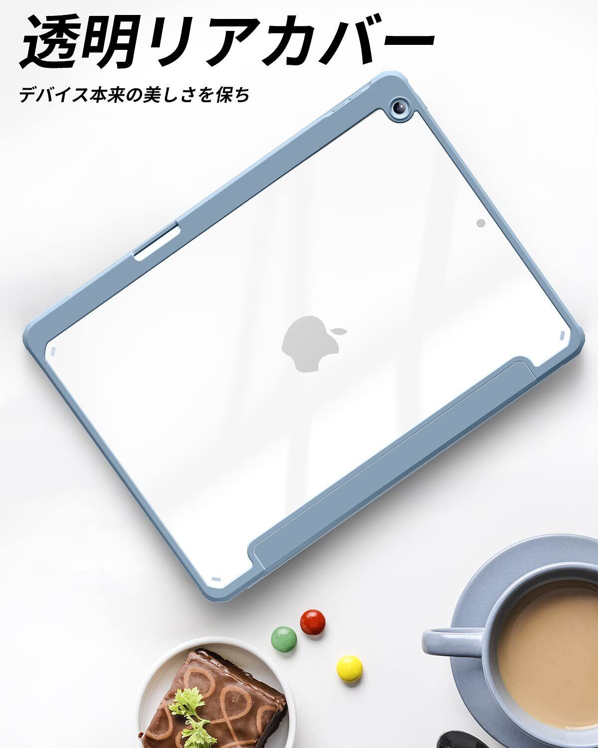 Aoub iPad 9世代 ケース 10.2 インチ iPad ケース 第9/8 /7世代 2021 2020 2019 透明バックカバー ペン収納 三つ折スタンド オートスリープ機能 軽量 薄型 傷つけ防止 PU合成レザー TPU (モデル番号A2602、A2603、A2604、A2605) スカイブルー