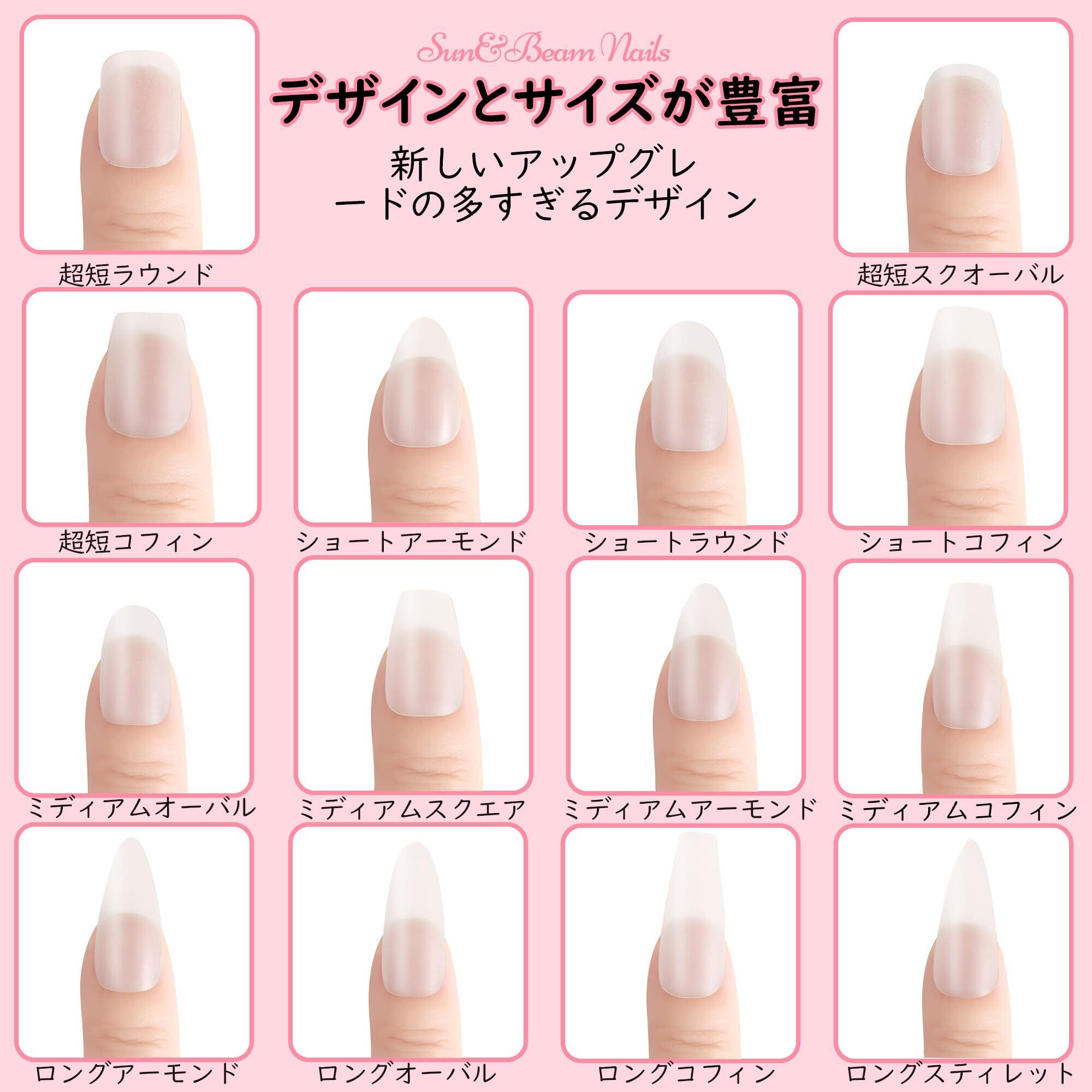【製品の大幅なアップグレード】お客様のフィードバックを参考に、工程と材料を最適化。同類商品より低い異臭、更なる健康安全性、ネイルの柔軟性の向上を実現しました。更に耐久性のある収納ボックスへと変更。爪の形状のカーブを最適化し、より多くの流行のネイル形状を提供。