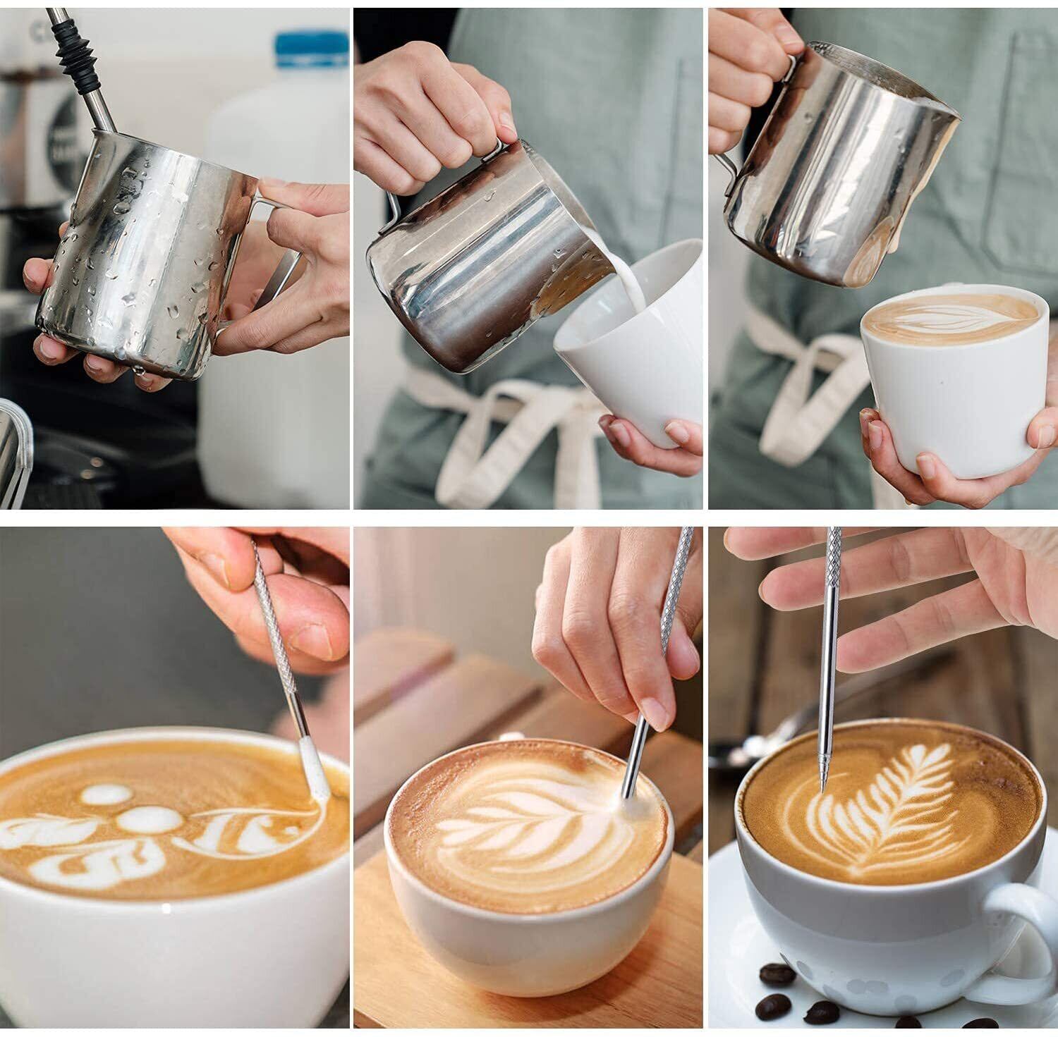 【数量限定】ミルク ピッチャーステンレス製 ステンレススチール コーヒー ラテアート スケール線付き ミルクジャグ ミルクポット泡立て器 スチームミルク エスプレッソ 蒸し ピッチャーミルクカップに 最適なアクセサリー握りやすいラテアート ピッチャー 先のとがった注ぎ口ミルクピッチャー ラテアート耐久性の高いミルクポット(400ml) | allstore3