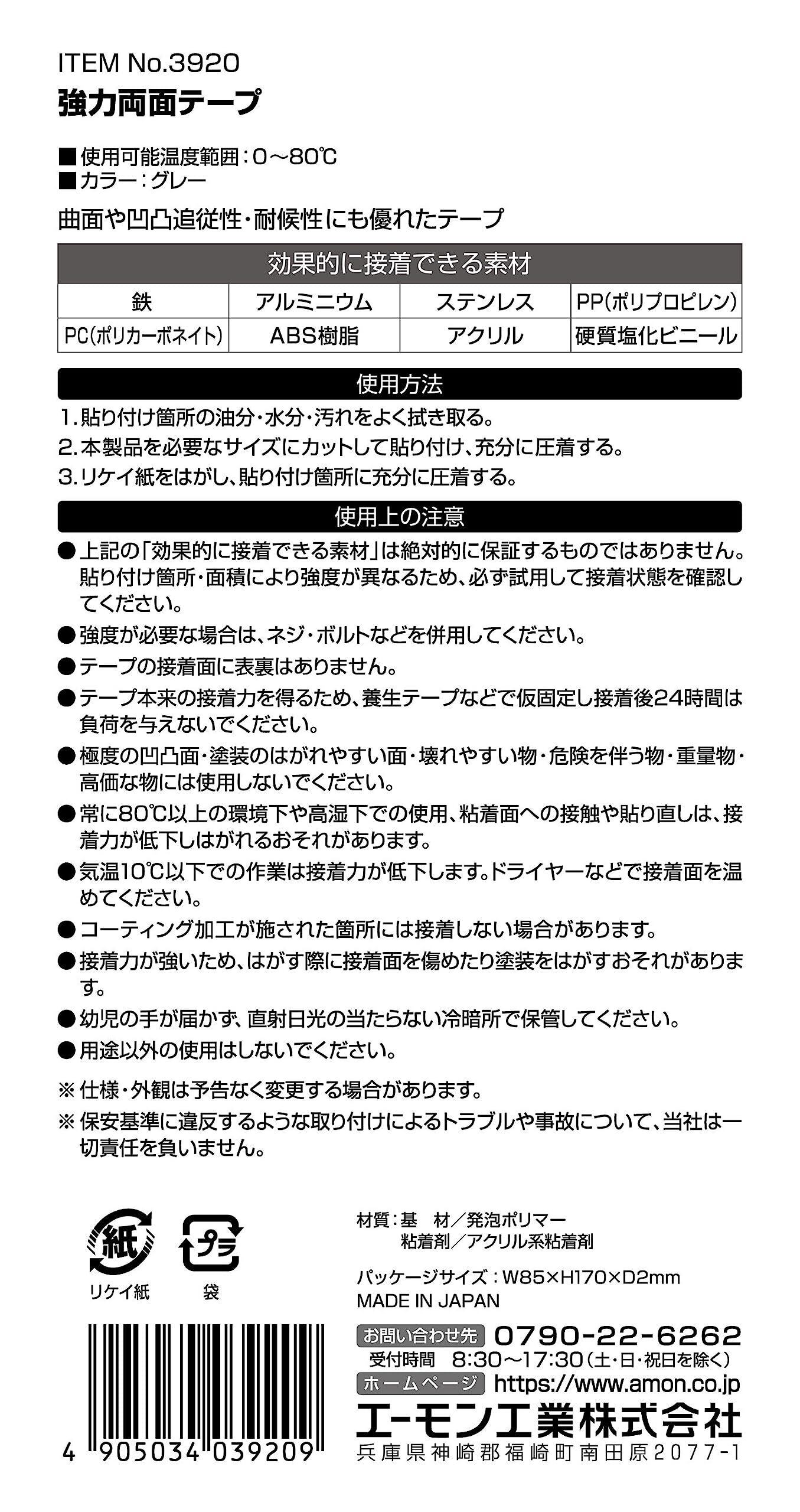エーモン(amon) 強力両面テープ (バックカメラ・デイライトなどに) 車外用 グレー 幅75mm×長さ140mm×厚さ0.85mm 3920