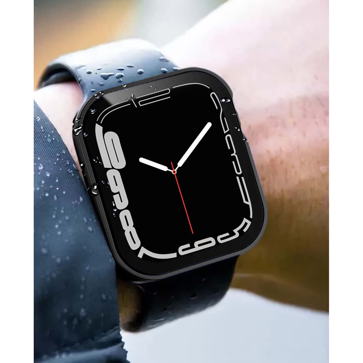 TALENANA for Apple Watch防水ケース 45mm 44mm 41mm 40mmアップルウォッチ 用 保護ケース 強化ガラスフィルム Series 7/6/SE/5/4 一体型 3D直角エッジ新デザイン メッキ加工 PC素材 高タッチ感度 全面保護 衝撃吸収 取付簡単 (Series 6/SE/5/4,44mm,ブラック)