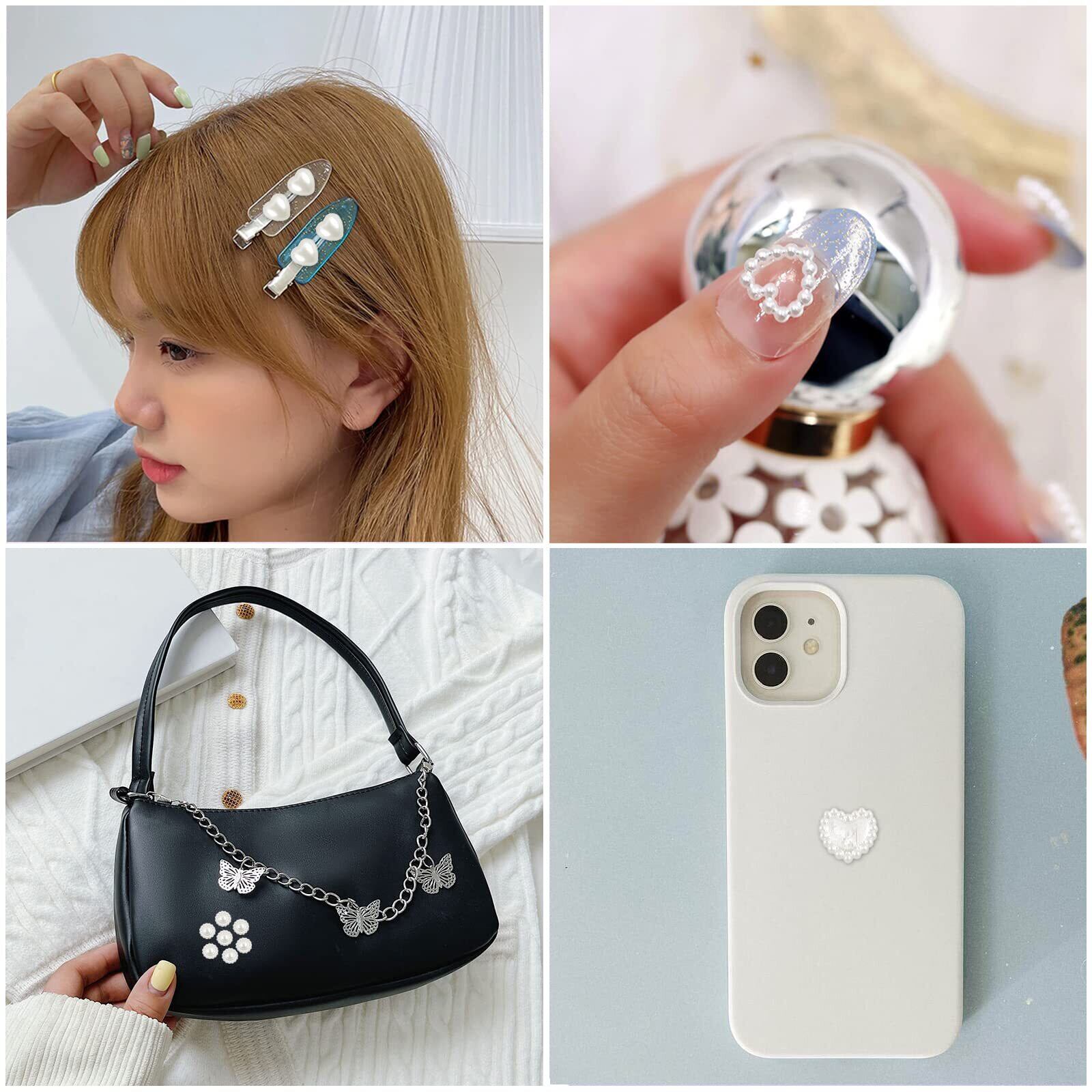ネイルパーツ ハート 約460個 3D 立体 ぷっくり ハート型 ネイルパール 白 大きめ ネイルアート デコパーツ ジュエリーパーツ (ホワイト)