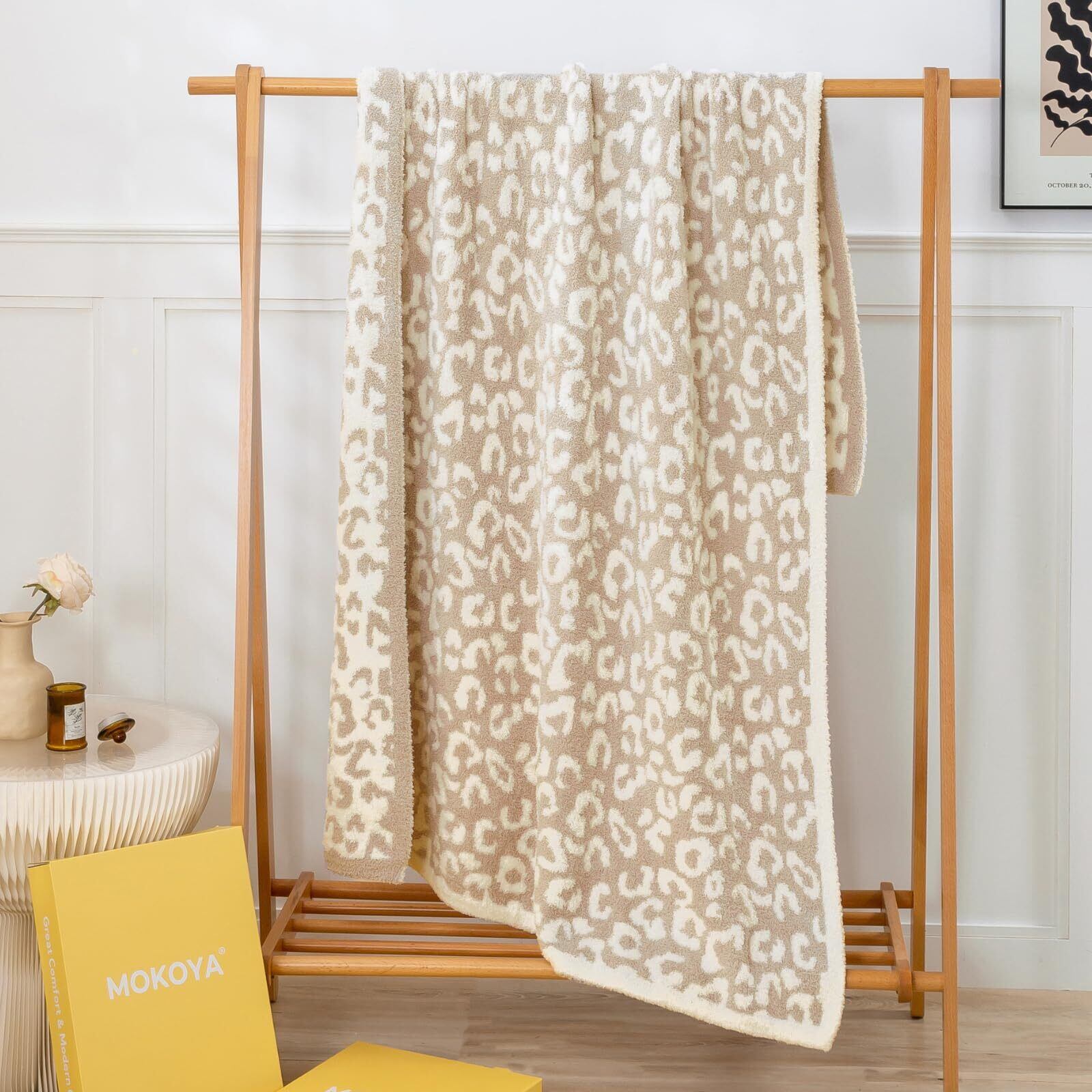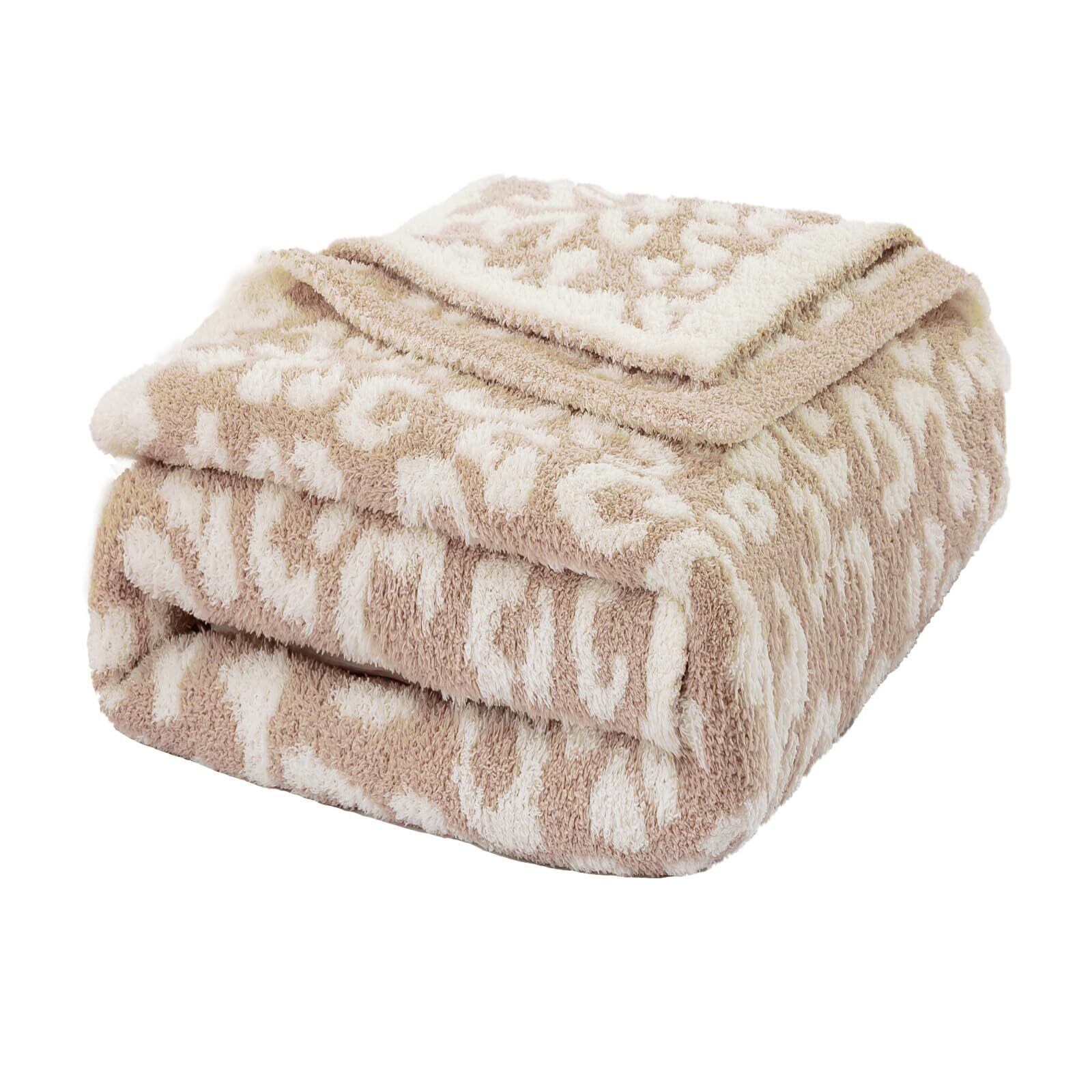 Mokoya ふわふわ おしゃれ 二重作り 毛布 冬用 シングル もこもこ 柔らかい 可愛い 豹柄 ブランケット リバーシブル 防寒 暖かい 掛け毛布 膝掛け 大判 プレゼント (ベージュ,130x180cm)