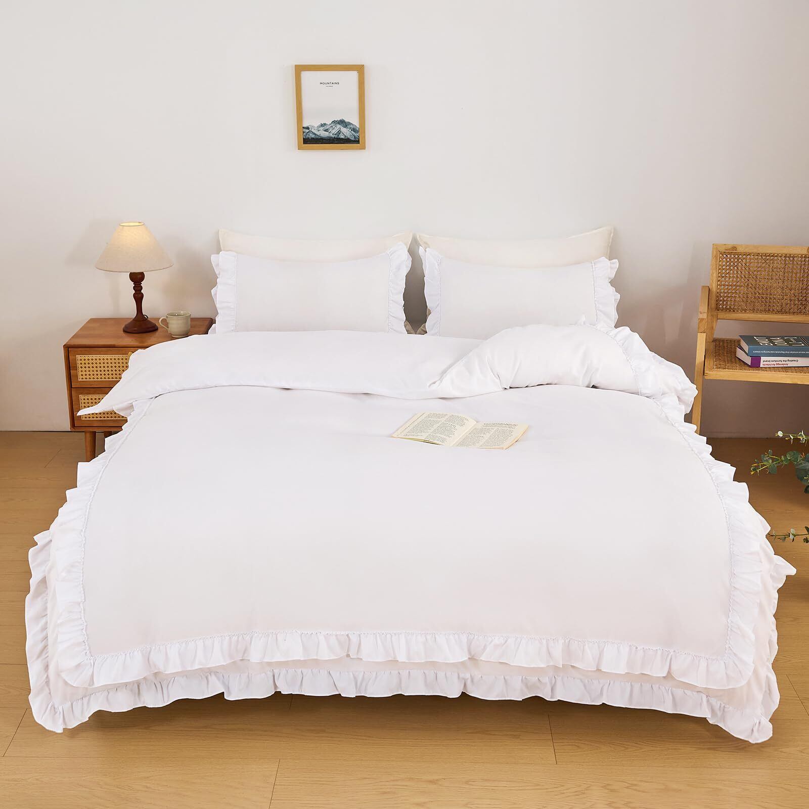 HOdo Home 布団カバー セミダブル 4点セット 掛け布団カバー ベッドカバー 枕カバー ベッドシーツ ボックスシーツ 洋式・和式兼用 寝具カバーセット フリル付き ピーチスキン加工 姫系 洗い替え速乾(ホワイト)