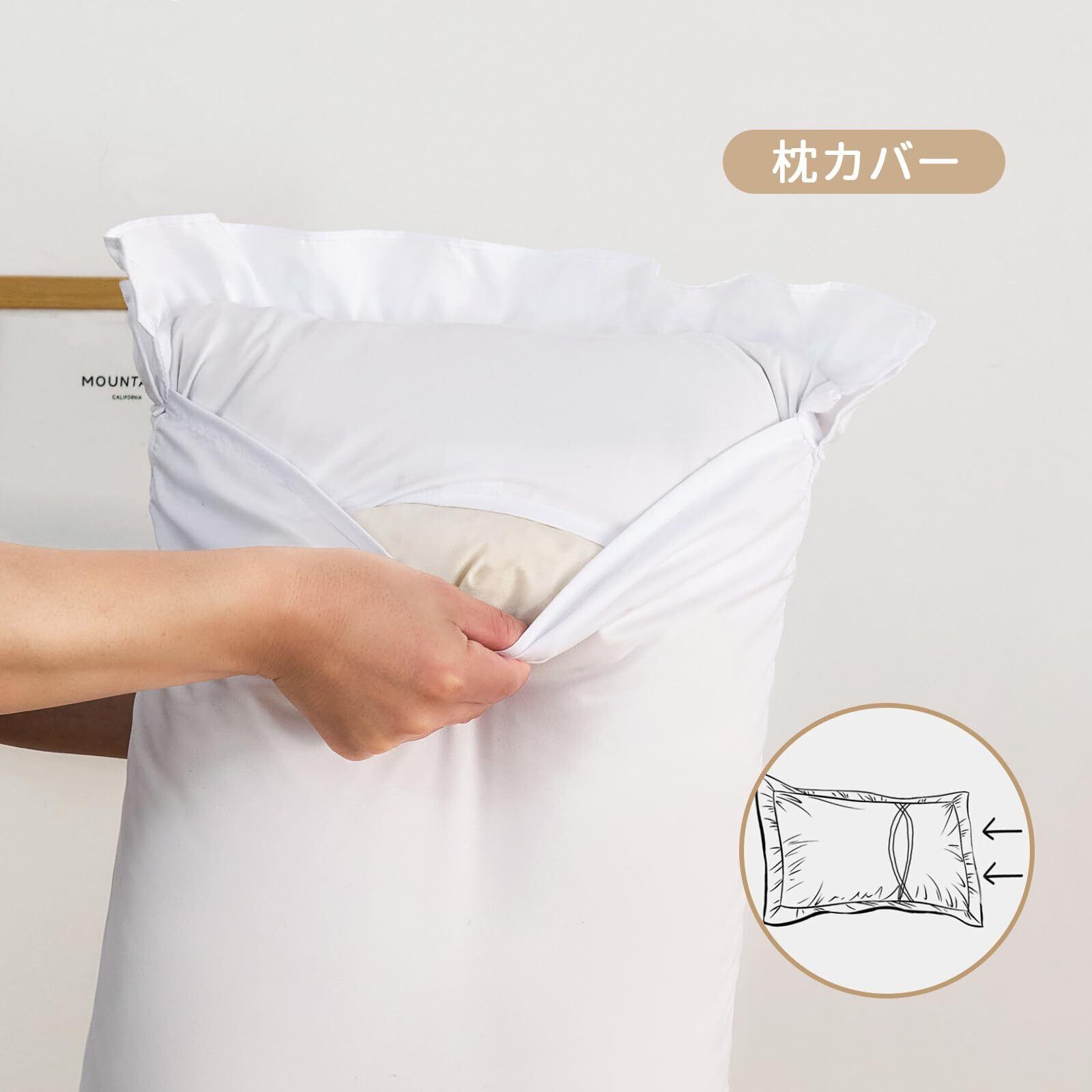 【2022最新】HOdo Home 布団カバー セミダブル 4点セット 掛け布団カバー ベッドカバー 枕カバー ベッドシーツ ボックスシーツ 洋式・和式兼用 寝具カバーセット フリル付き ピーチスキン加工 姫系 洗い替え速乾(ホワイト)