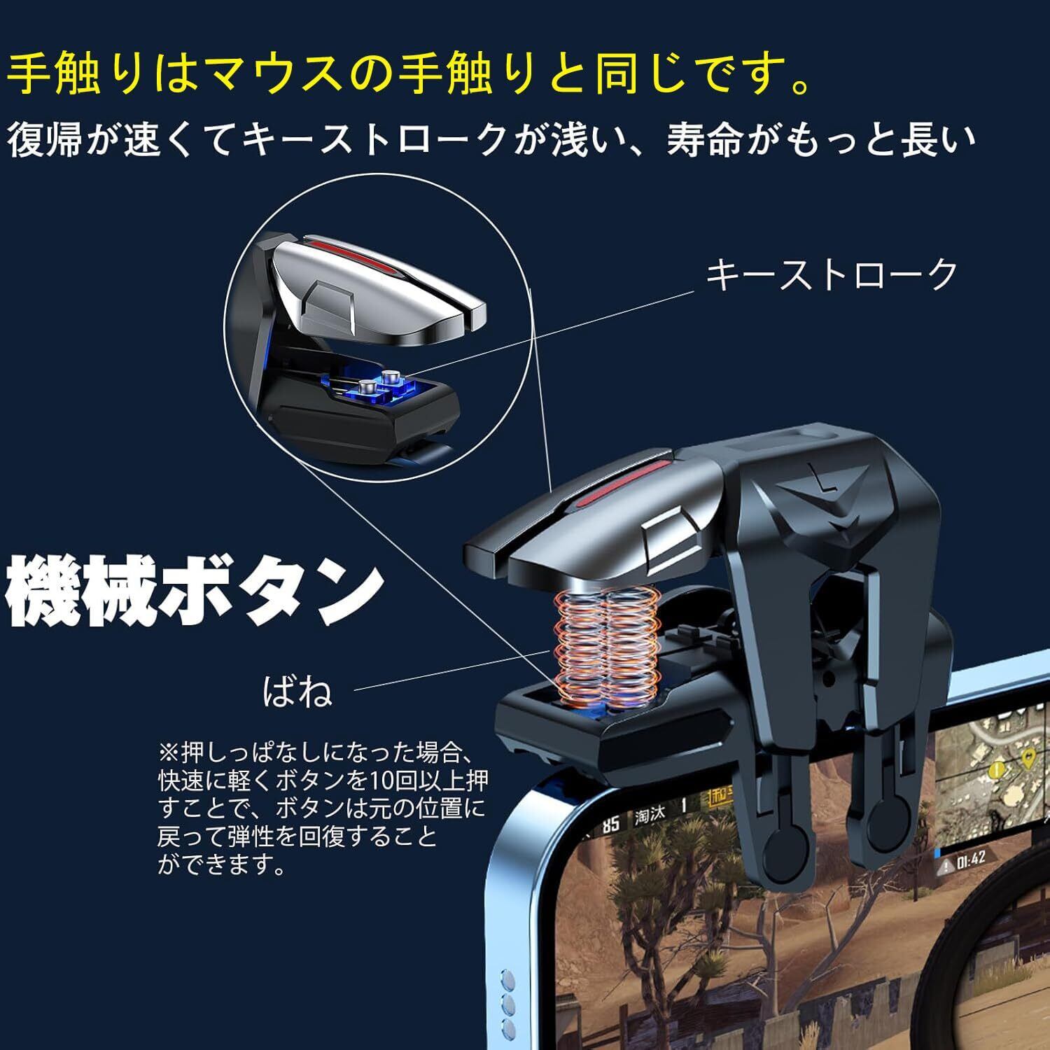【コンパクトで軽量】PUBG Mobile/荒野行動/Cyber Hunter ゲームトリガーは持ち運びが容易で小さく、ポケットに入れることができます。オフィス、学校、旅行、キャンプの際にも持ちて行き、いつでもどこでもゲームを楽しむことができます。6本のトリガーを備えたPUBG Mobile/荒野行動/Cyber Hunter モバイルコントローラーを使用することで、親指で操作するだけのトラブルを解消し、人差し指でボタンを押すことで、同時に移動、回転、狙い、射撃を行うことができます。