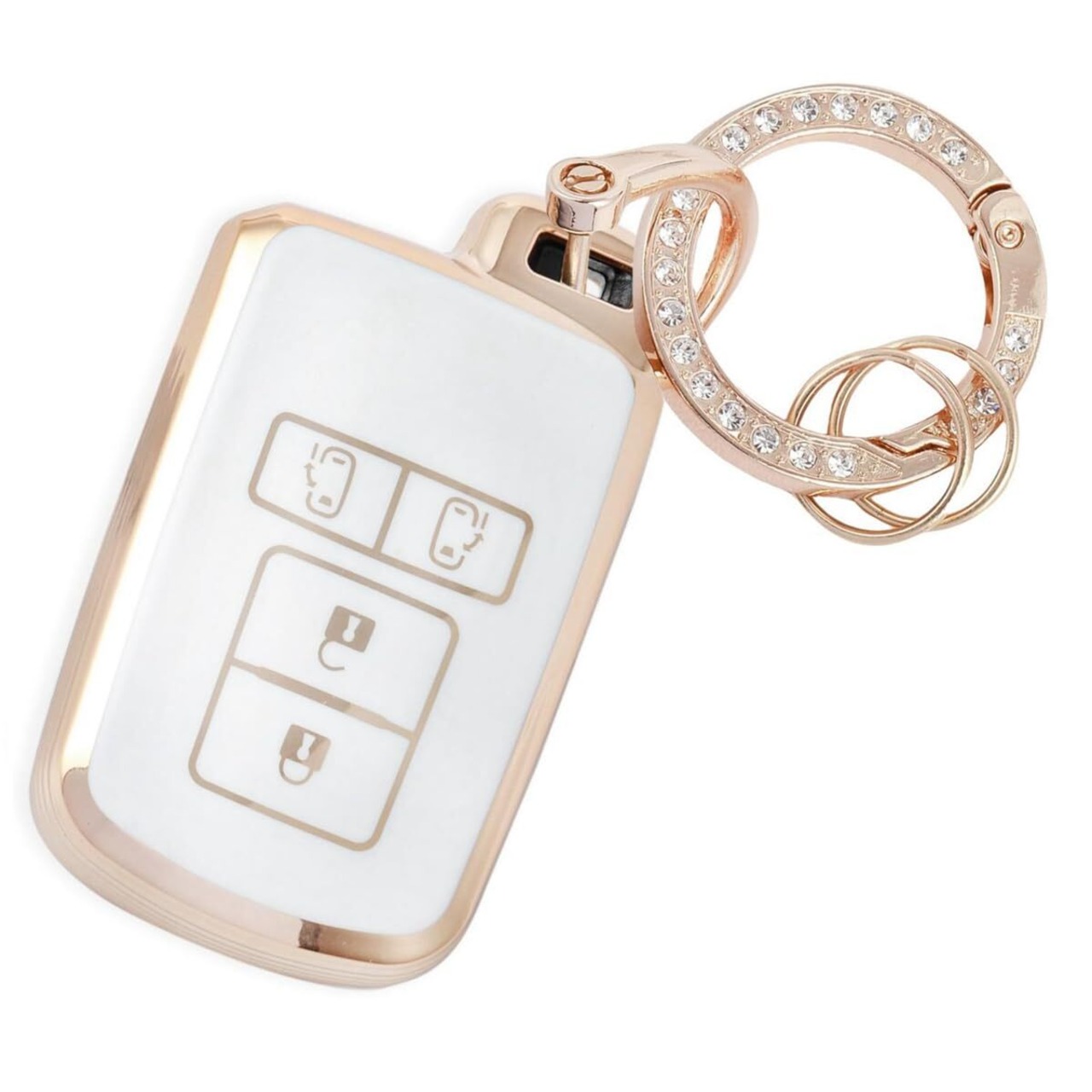 【高級な質感】キーケースの表面は三層特殊なコーティングを採用し、鍵を金属のように輝いて、高級な輝きと質感で、かなり華やかな外観をしています。本キーケースを取り付けるだけで愛車のスマートキーは高級車のキーに相応しく様変わりします。何気なくスマートキーを出すだけで周りの注目を集めます。愛車自慢のあなたにお勧めの逸品です。