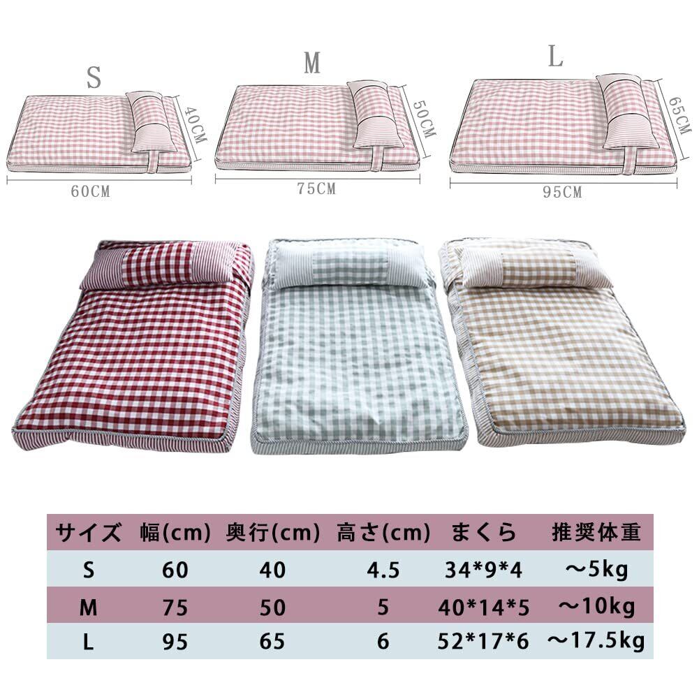 【色・サイズ選択可能】猫、小型犬、中型犬に使えるサイズバリエーション。わんちゃん・ねこちゃん2頭仲良くねんねもOKカラーはレッド・ベージュ・グリーンの3色展開です。 対応犬種目安: S:チワワ、トイプードル、猫(~5kg) M:シバ、キャバリア、猫(~10kg) L:ボーダーコリー、バグ、フレンチボルドー(~17.5kg)