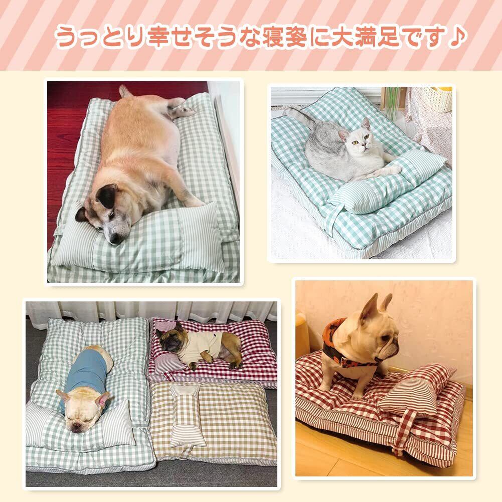 Bidason ベッド ペット クッション 猫 枕 セット チェック柄 スクエア 可愛い 綿麻風 通気 滑り止め 取り外し可能 洗える 小型 中型 キャット 犬 兼用 マット オールシーズン