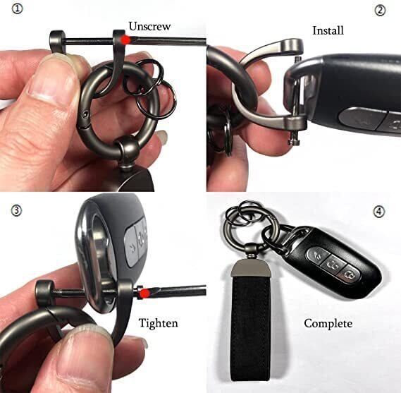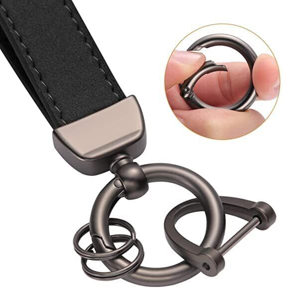 [AIXUAN] キーホルダー真皮キーホルダー男女適用、360度回転、紛失防止Dリング、リングボタンとキーホルダーリング付き。 (タイプ4)