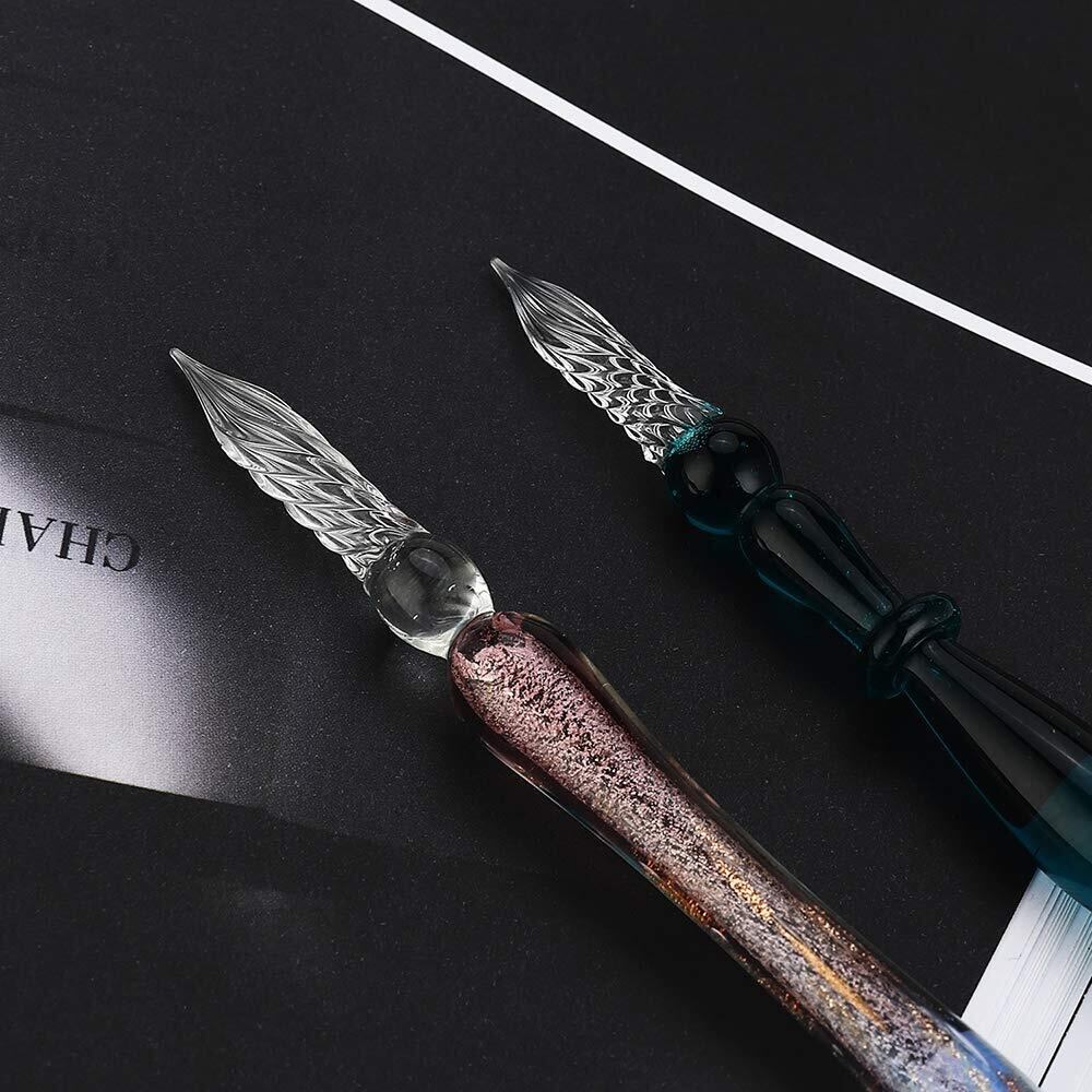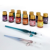 【新春セール】Mancola ペン2*本体 インクガラスディップペンインクセットレインボークリスタルガラスペン、アート、ライティング、署名、書道、装飾用の12種類のインクMA-JP-16 | allstore3