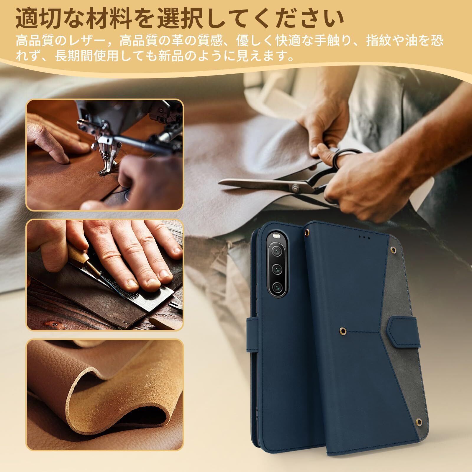 Xperia 10 V ケース 手帳型 財布型 全面保護 耐衝撃 エクスペリア 10 V スマホケース カード収納 肌感レザー ラップホール付き 横置き機能付き マグネット内蔵 SO-52D SOG11 携帯カバー 指紋防止 耐摩擦 ファッション ベルトマグネット,ブルー