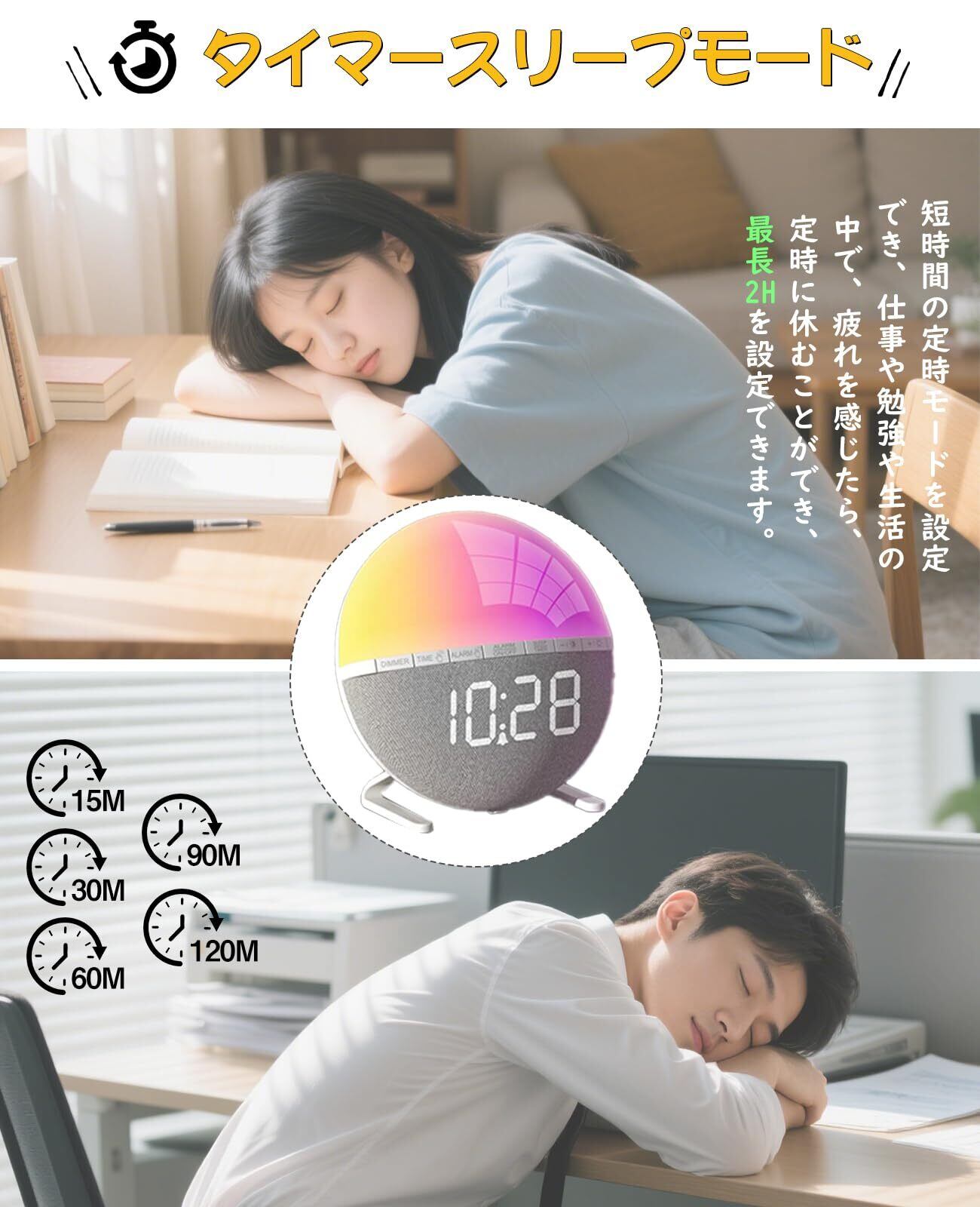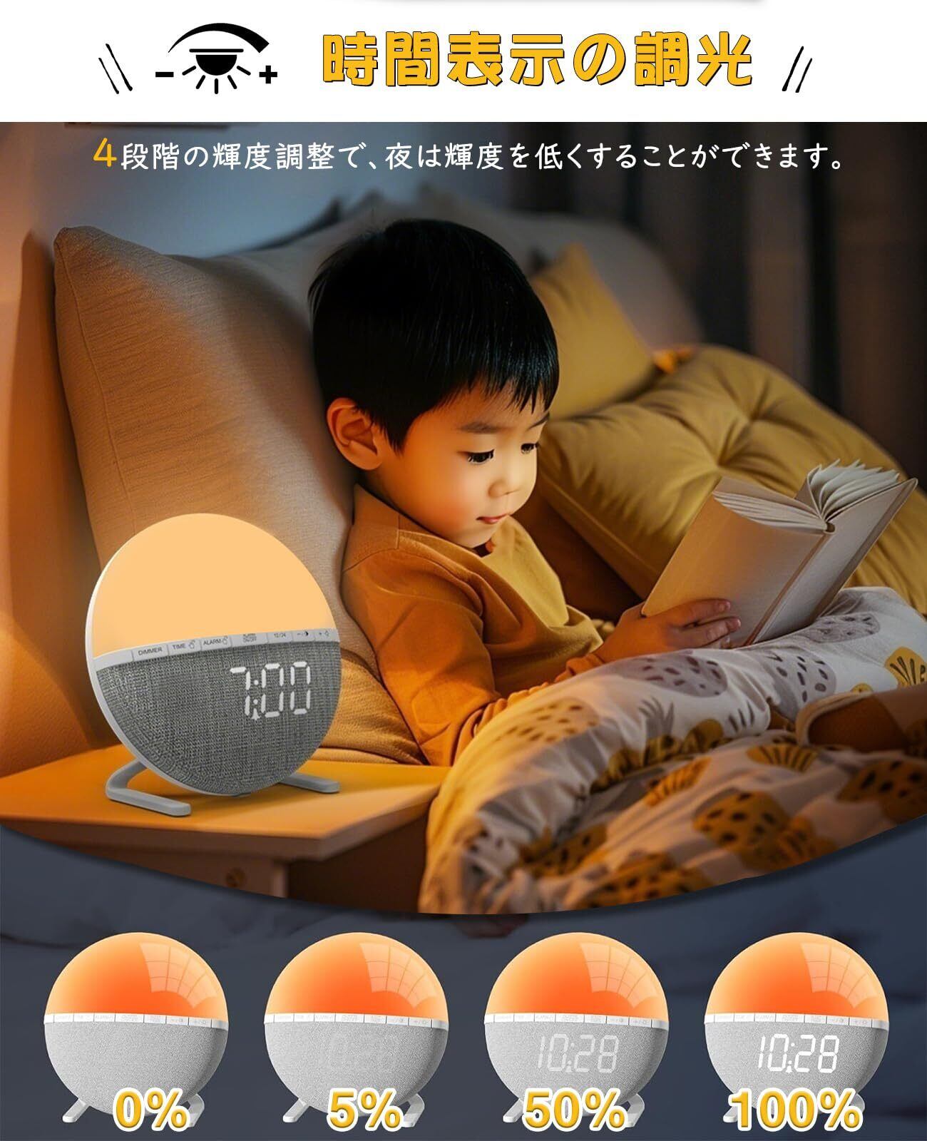 日の出雰囲気シミュレーションのアラーム機能■この光る目覚まし時計が日の出機能があります。アラーム時間前の10-60分以内には日の出の雰囲気をシミュレーションします。