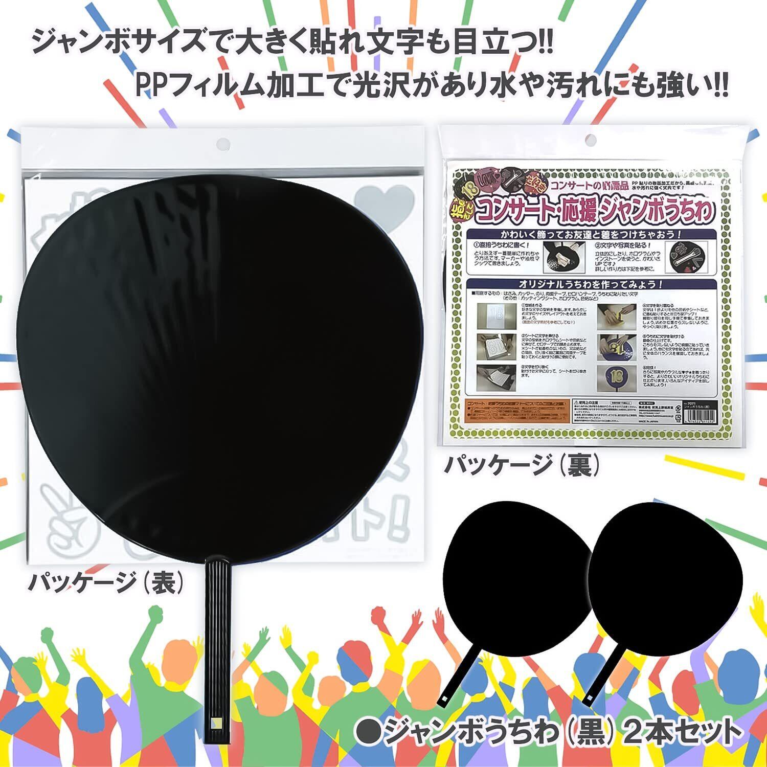 新日本カレンダー うちわ 推し活グッズ ジャンボうちわ 2枚セット 黒 7171
