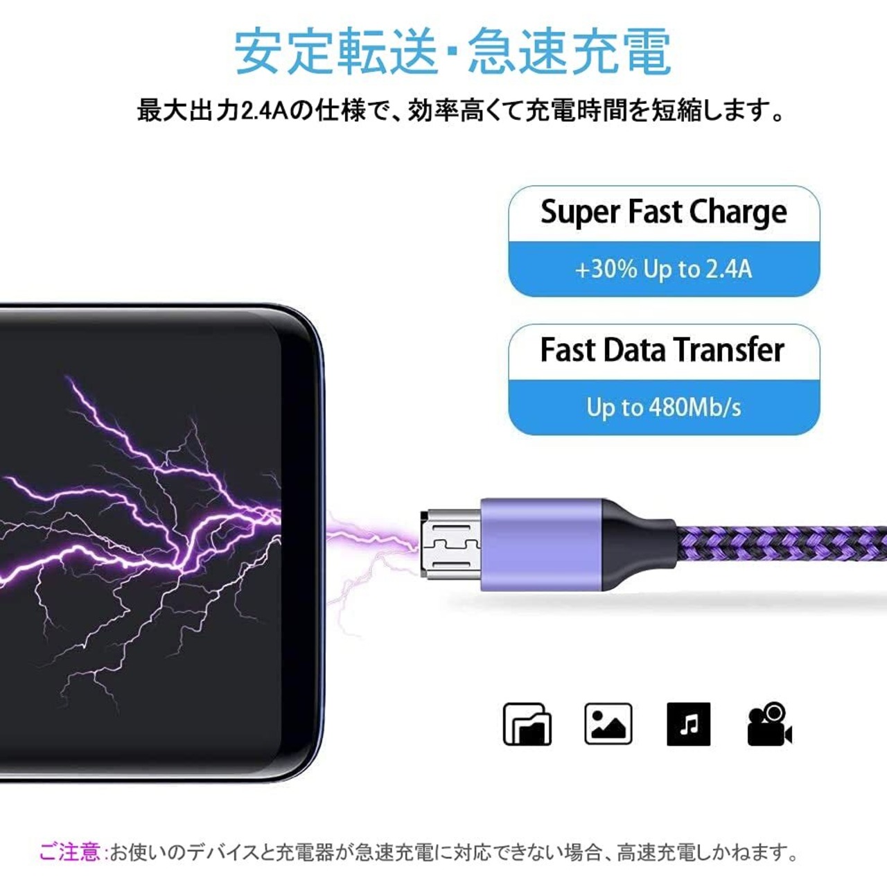 【在庫セール】Viviber マイクロ usb ケーブル Micro B ケーブル【1.8M/2色】2.4A急速充電 PS4 充電ケーブル ナイロン編み Android スマホ充電ケーブル アンドロイド高速充電ケーブル タイプbケーブル B充電コード 高速データ転送 Sharp Aquos Pad/Zeta, Sony Xperia J1/A/Z3,などMicro B端子機器対応 | allstore3