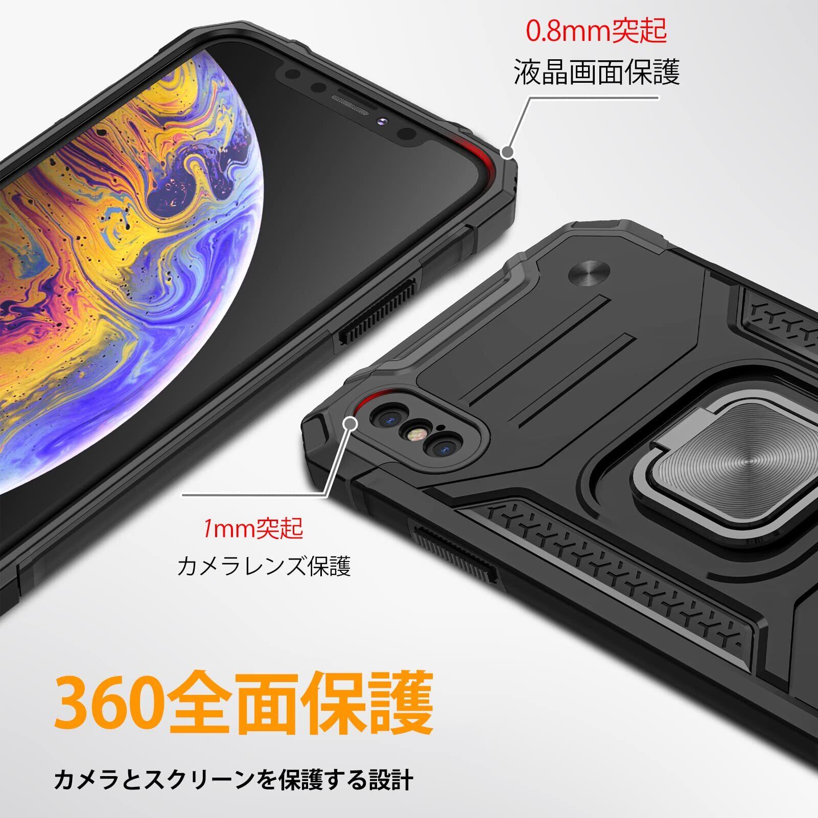 【リング付き・スタンド機能】後ろで嵌め込み式リング付き、伝統的なリングと比較して、アイフォーンの水平安定性を維持することができます。ケースを横向きにするとスタンド機能になり、携帯を横に放置できて、いつでもどこでも音楽、facetime、映画などの娯楽番組を思い切り楽しめます。360度回転と120度調節可能です。片手で携帯を操作でき、滑り止め、強奪、落下などのことを防げます。