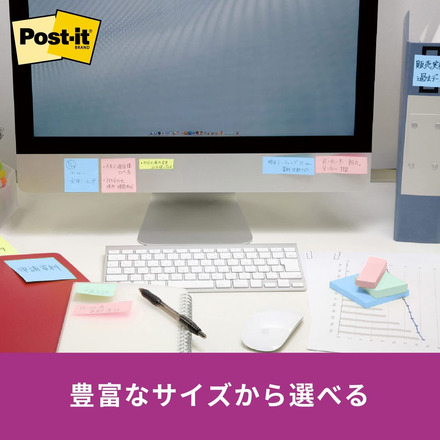 ●ふせんサイズ:75x100mm。 たっぷり書き込める大判サイズのポストイット付箋。詳しい伝言や記録、掲示や在庫整理などに便利なサイズです。