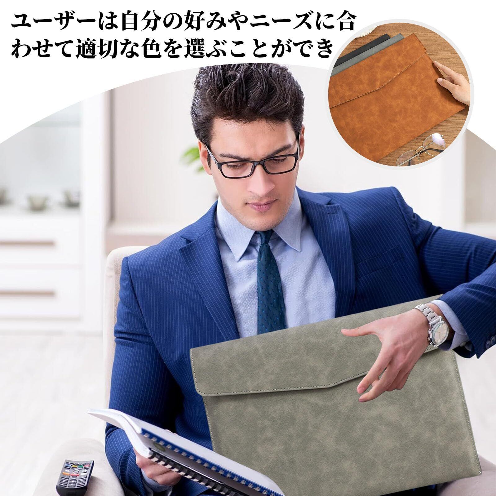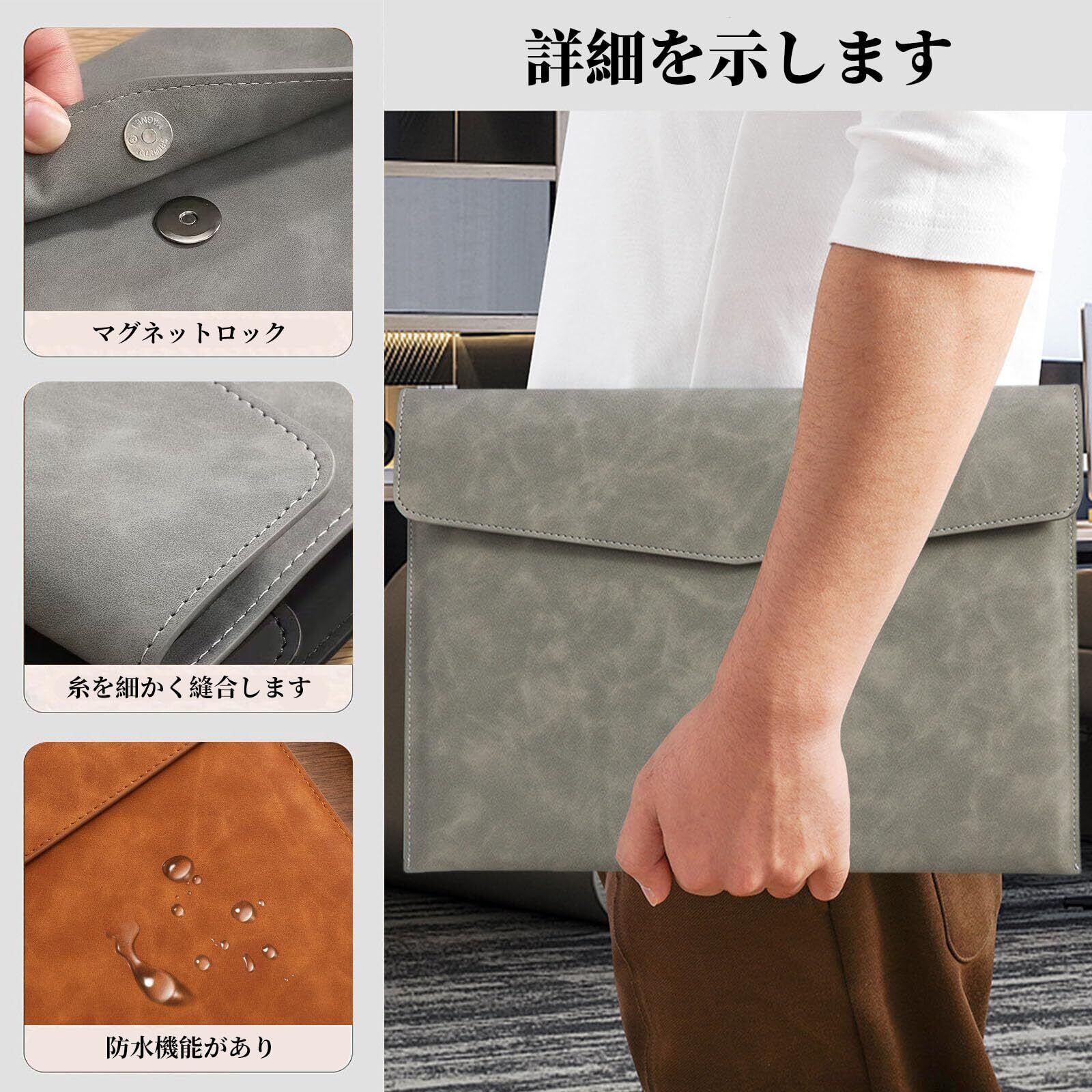 yowodana 2個入り ファイルフォルダー PUレザー 書類ケース A4サイズ 横型 磁気スナップ 厚手 持ち運び ファイルケース ドキュメントレター 書類ケース 資料 封筒 大容量 防水 資料 収納 オフィス ビジネス 33*24cm(グレー/ブラウン)