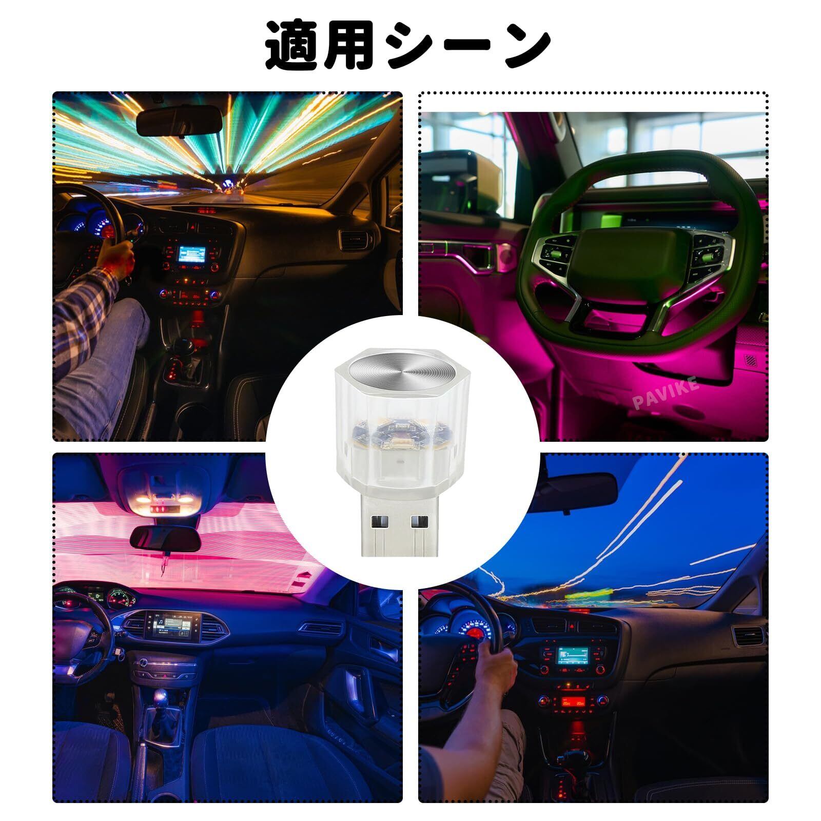 PAVIKE 車内ledライト 7色切替 4個セット ミニサイズ usb ledライト車内用 usb式 車の装飾アクセサリー、USBプラグイン、車内照明などに適し