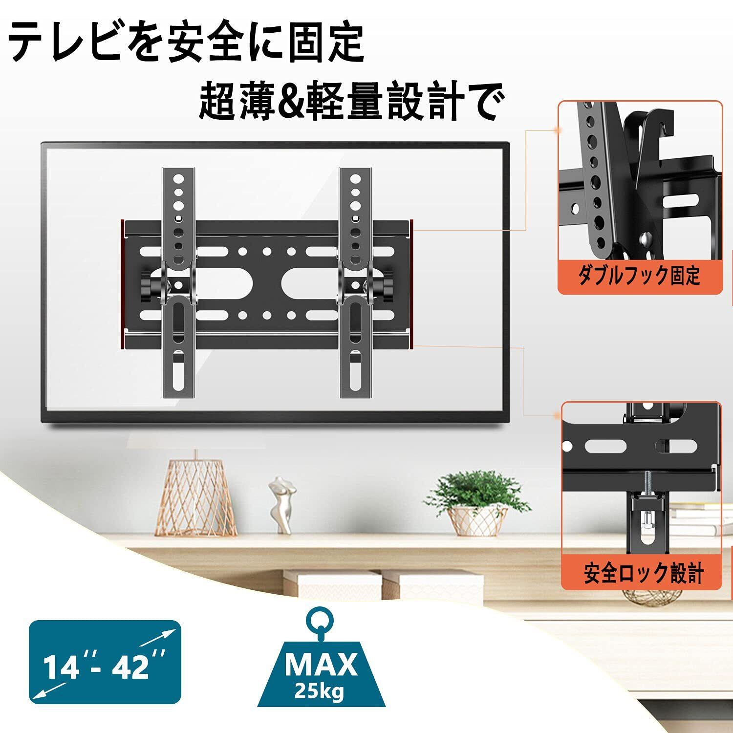 テレビ壁掛け金具TETVIK 14-42インチ対応 耐荷重25kg LCD LED 液晶テレビモニター用 上下ティルト±15度 VESA 200x200mm 可傾式TV壁掛け金具