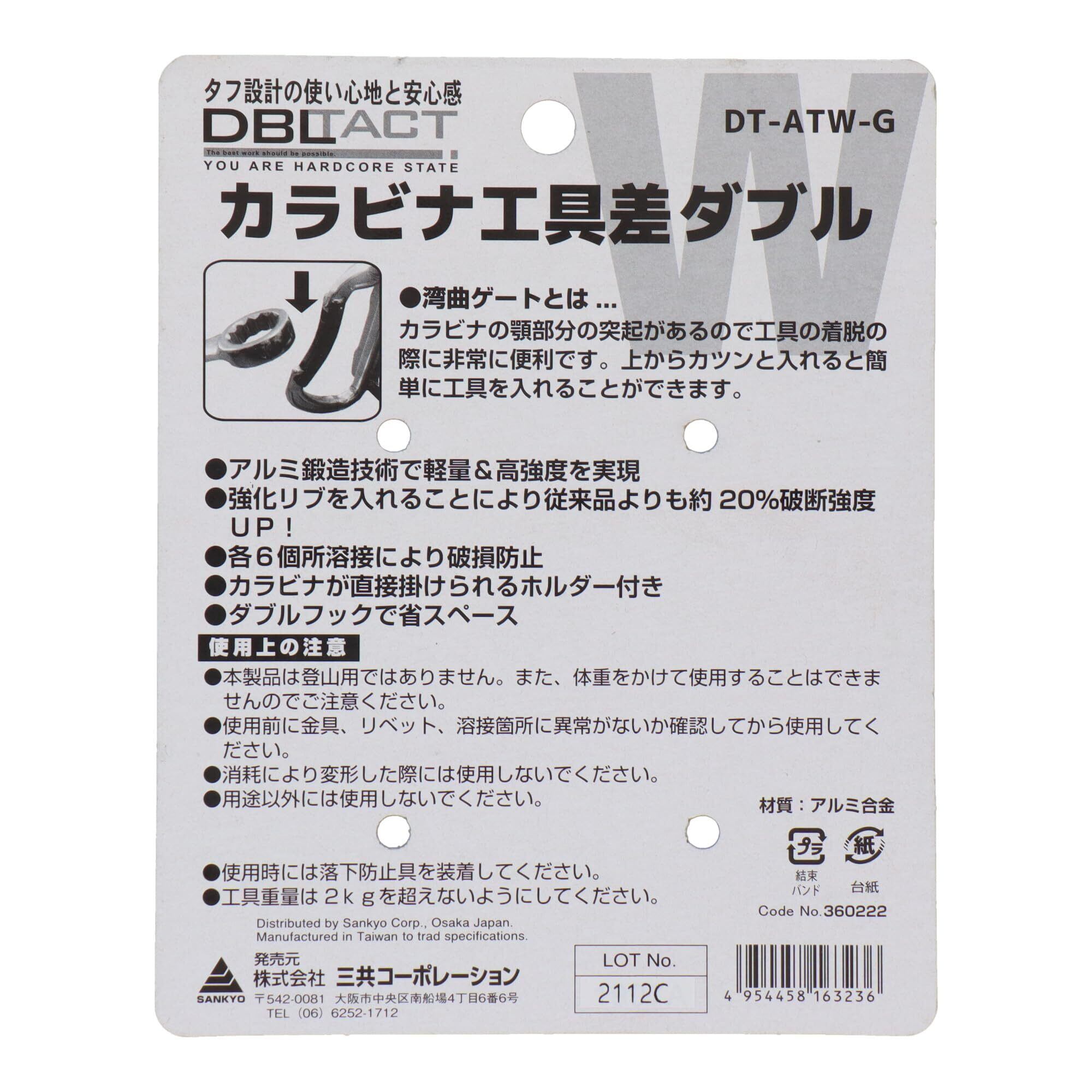 三共コーポレーション DBLTACT カラビナ工具差ダブル <湾曲ゲート> 大×大 高強度アルミ鍛造品 ガンメタ DT-ATW-G
