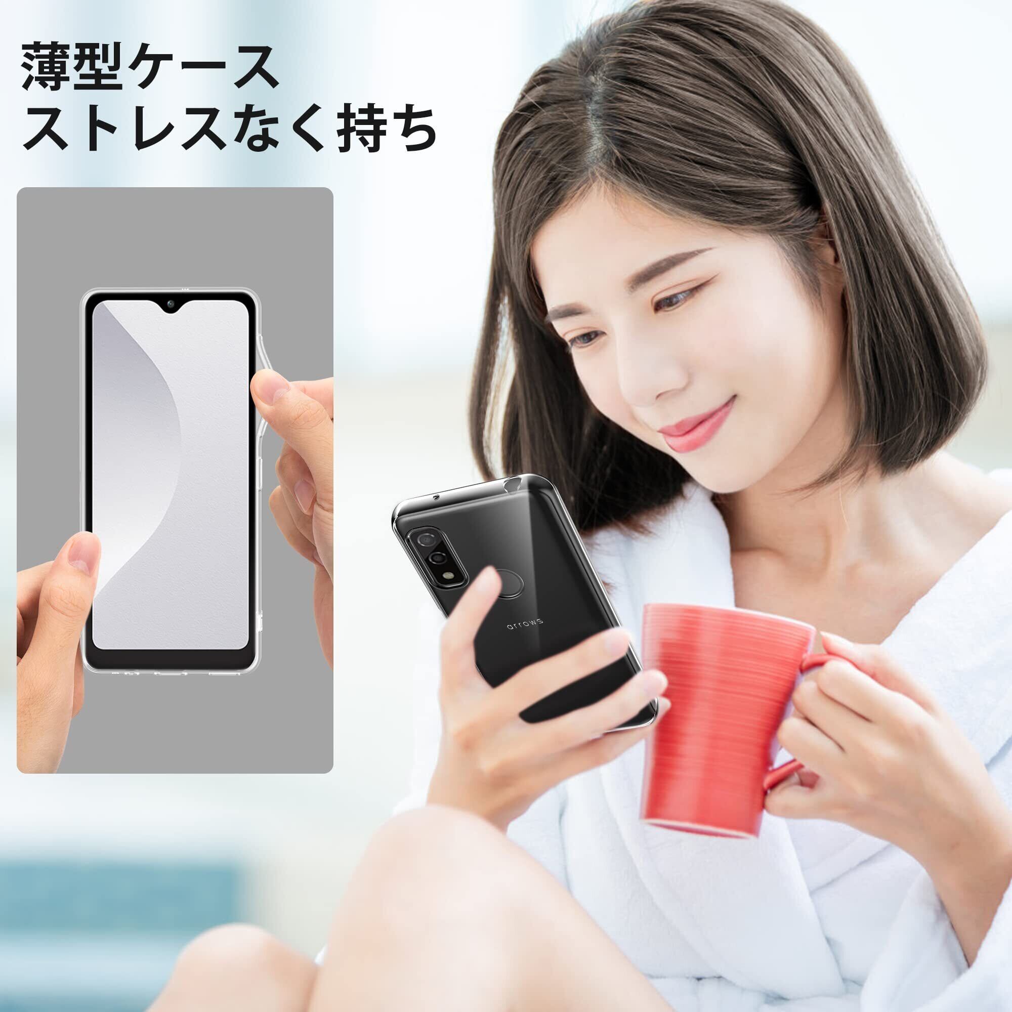 arrows We ケース クリア - アローズ ウィー F-51B FCG01 カバー クリアケース Arae 「ストラップホール/耐衝撃/擦り傷防止/滑り止め/人気/おしゃれ」 スマホケースTPUバンパー (arrows We F-51B/ FCG01, クリア)
