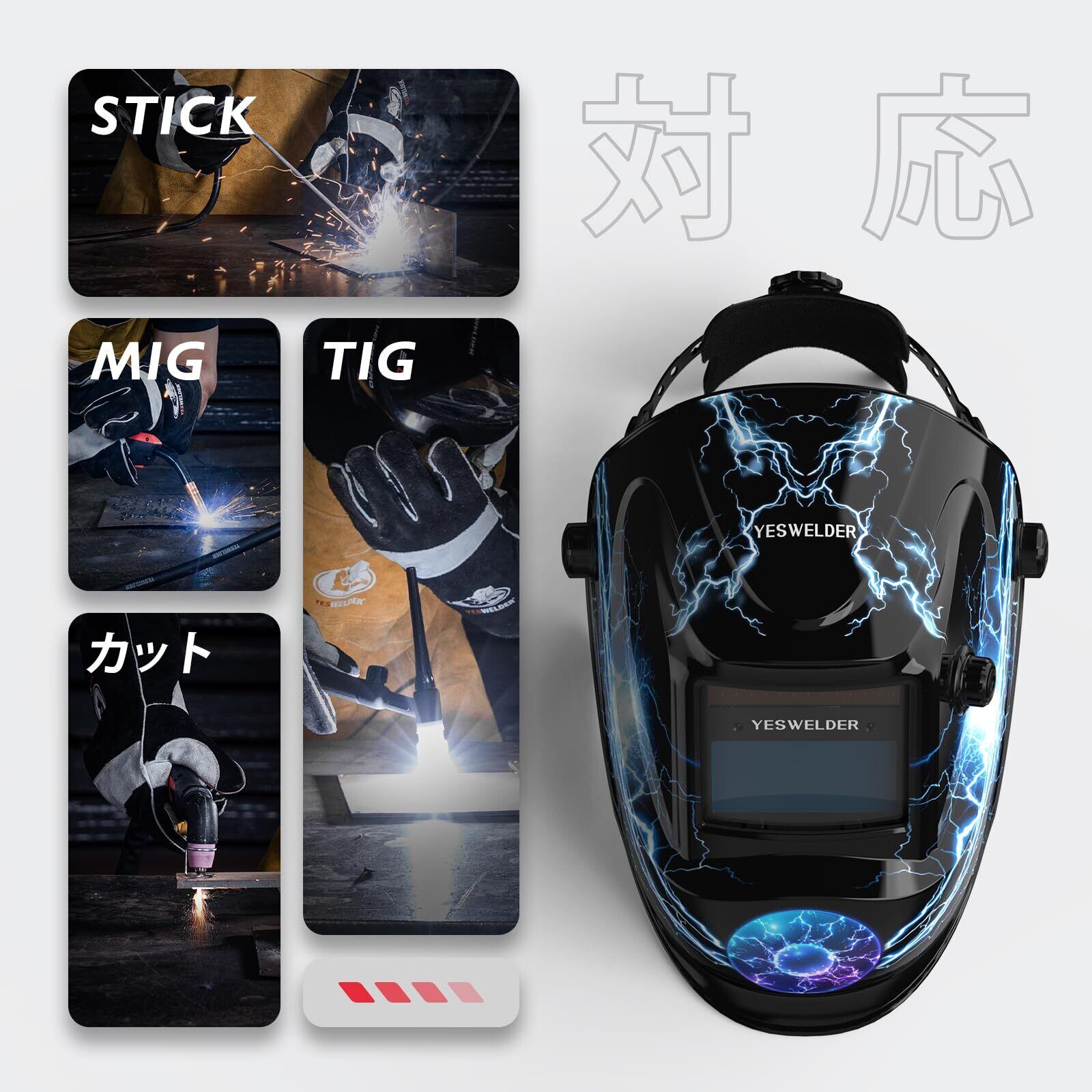 【新着商品】YESWELDER 溶接面 本当の色を映す ソーラーパワー 自動遮光溶接面 1/30000秒 遮光度4/5-9/9-13 TIG MIG ARC溶接に対応溶接ヘルメット LYG-L600A-A