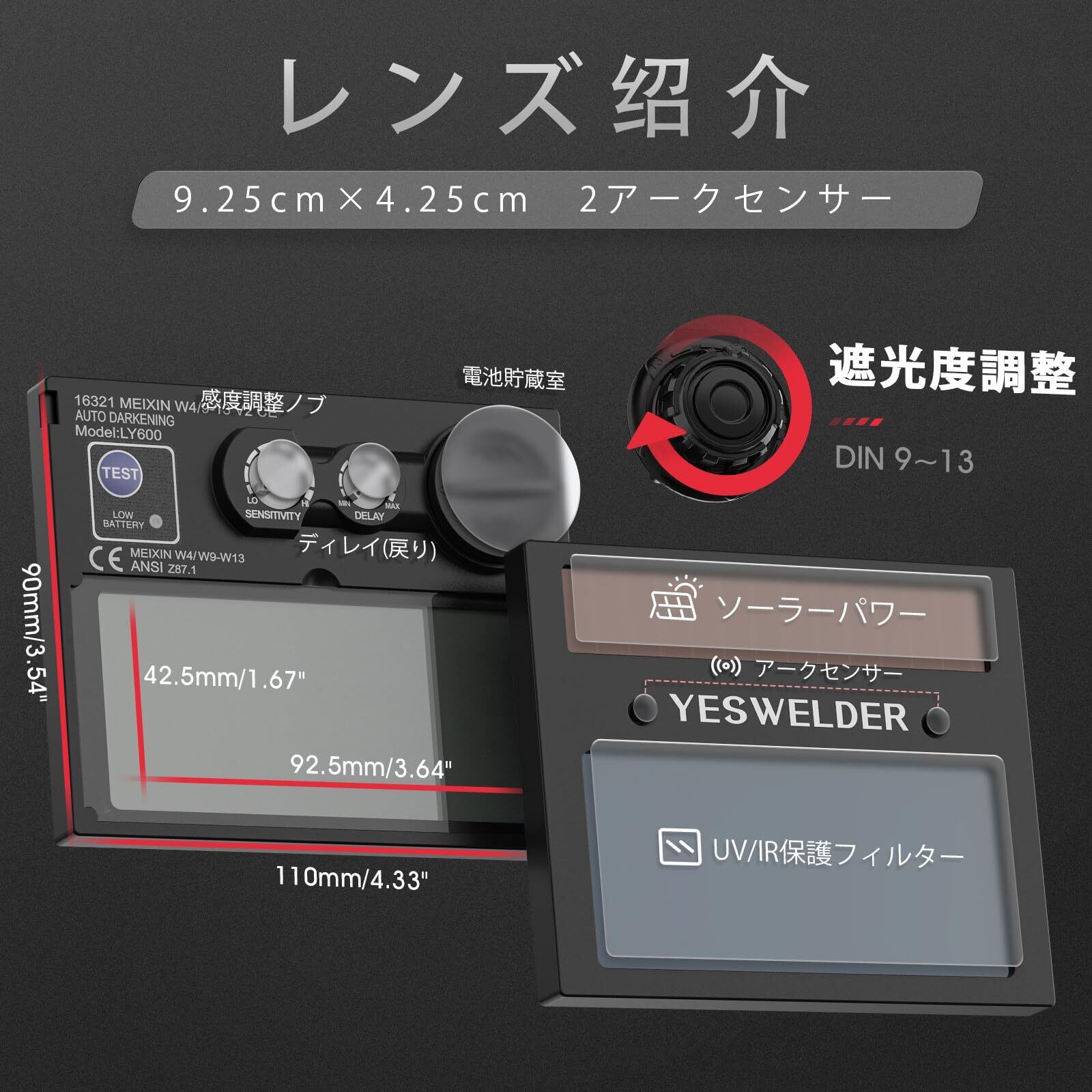 YESWELDER 溶接面 本当の色を映す ソーラーパワー 自動遮光溶接面 1/30000秒 遮光度4/5-9/9-13 TIG MIG ARC溶接に対応溶接ヘルメット LYG-L600A-A