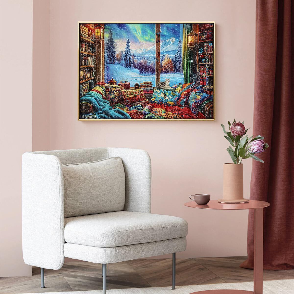 【新春セール】MISITU ジグソーパズル 1000ピース パズル 風景 絵画 冬 雪 本 猫 プレゼント 誕生日 クリスマス おしゃれ インテリア 雪見 (50 x 70cm)