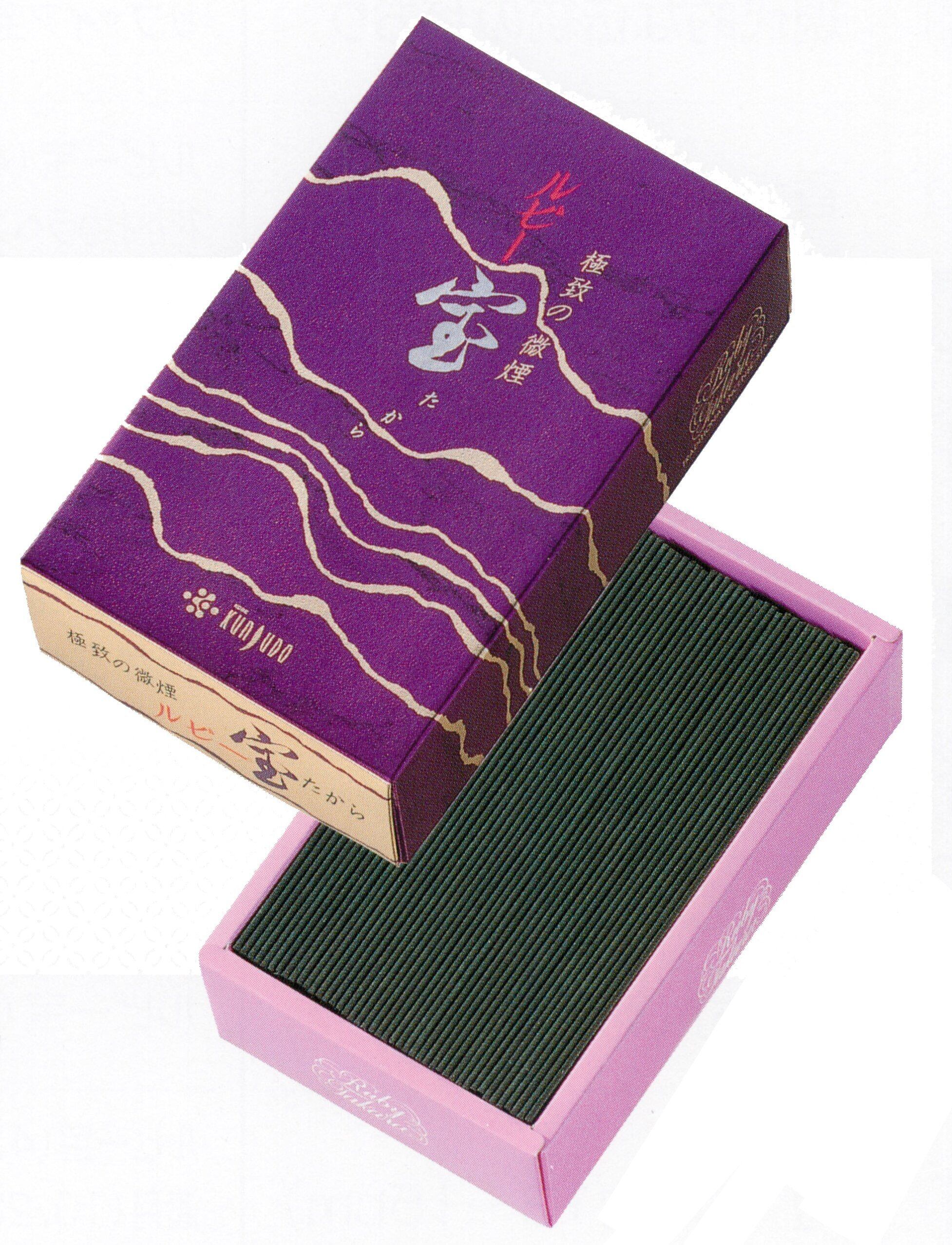 “不滅の炎"や“太陽の石"にたとえられるルビーのように、フローラル・ブーケのあざやかなかおりを持った極微煙、長時間燃焼のお線香。