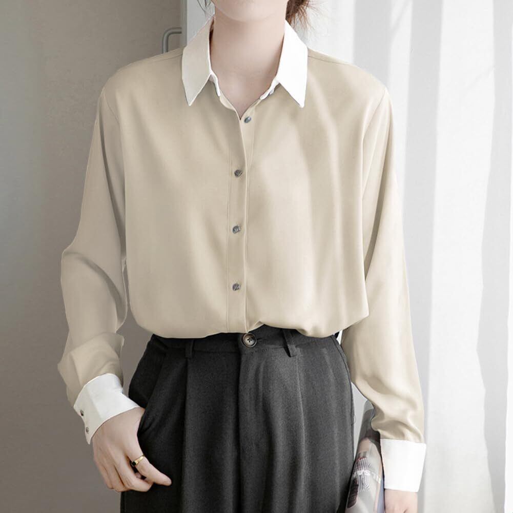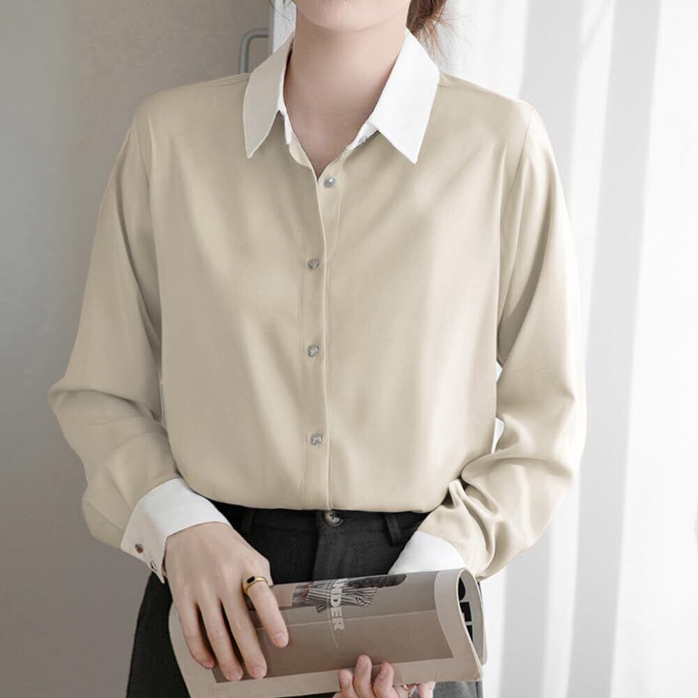 [Yino] (イノ) シャツ ブラウス レディース 長袖 バイカラー 襟付き トップス 体型カバー 着瘦せ シンプル きれいめ カジュアル 通勤 オフィス フォマール お出掛け ワイシャツ 秋 春