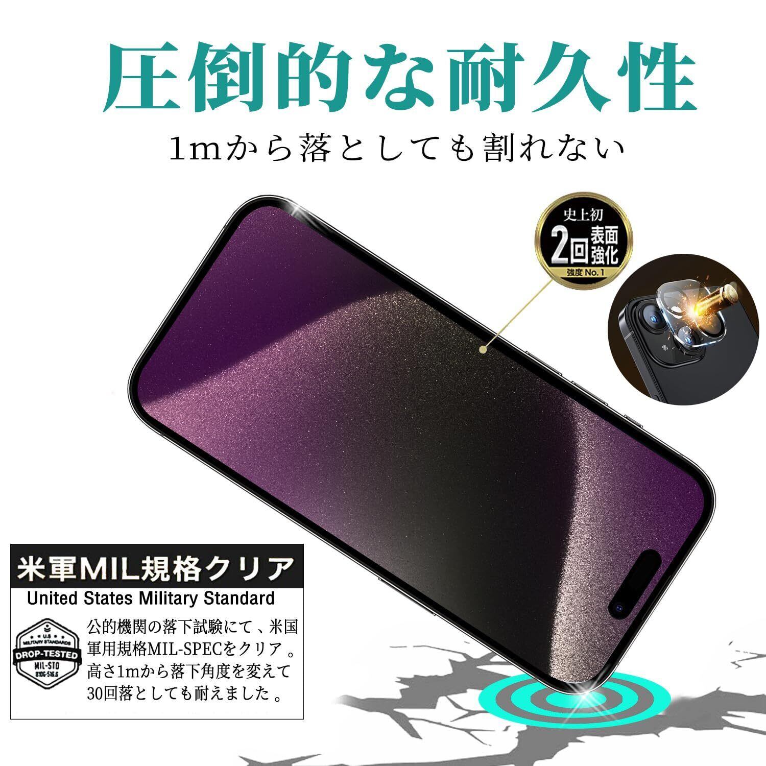 【ブルーライトカット 】 iPhone 15 Pro Max 用 ガラスフィルム いPhone15ProMax 用 フィルム ブルーライト 強化ガラス アイフォン 15プロマックス 用 液晶 保護 【2枚セット/硬度9H/指紋防止/気泡ゼロ/カメラフィルム付き/ガイド枠付き/6.7インチ】