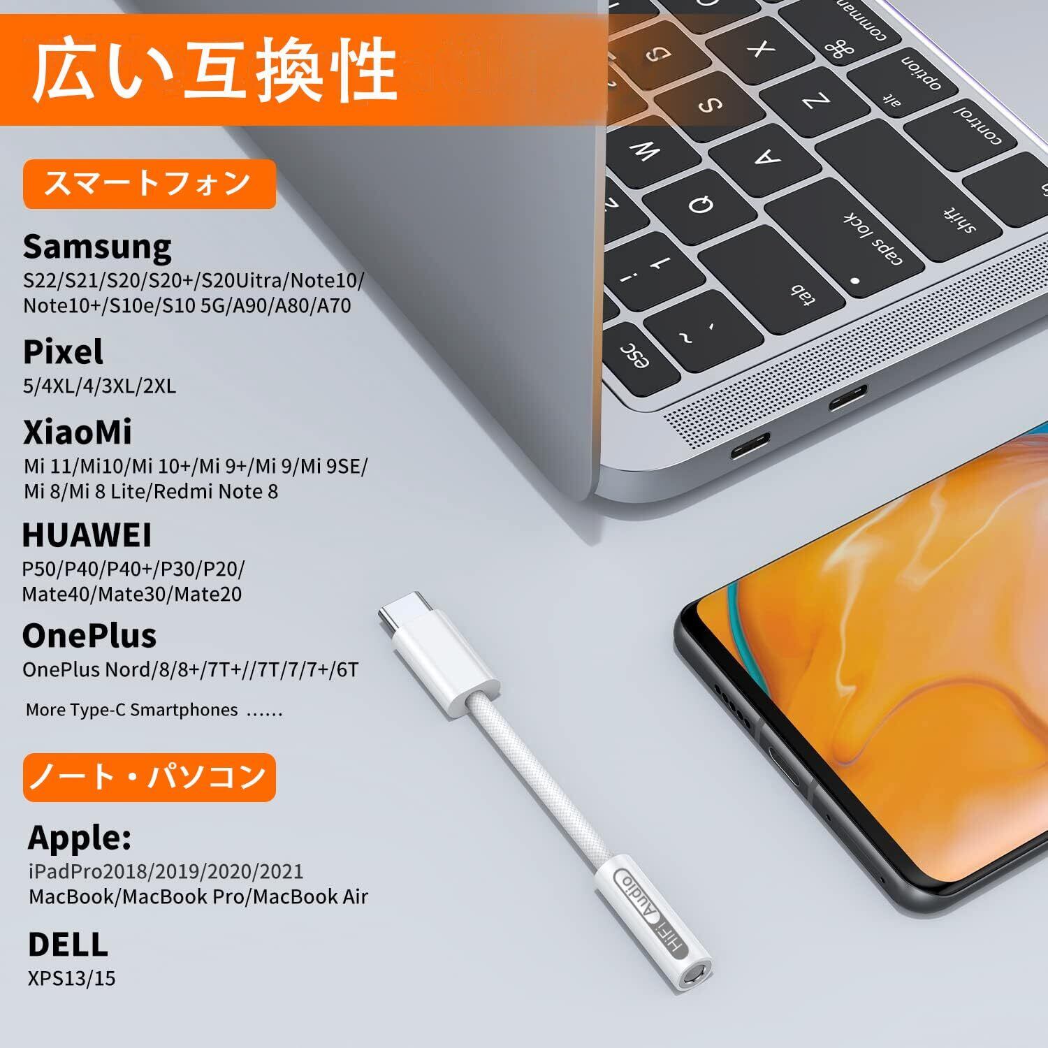 【幅広い互換性】: このUSB C-3.5mm 変換アダプタはType Cポートがを備えるデバイスに対応できます。MAC OS、I OS、Androidのシステムに対応で、幅広い互換性が持ちます。例えiPhone 16 15シリーズ/ Pad Pro/ Mac Book/ Glaxy/ Huawei/ Google Pixel 5/6/7/8/9,OnePlus, PS4, PS5, S24 S23 S21 S20Ultra Note 10, Plus、HTC U12, Ultra、Moto Z/Z2, Xiaomi 6/Note 3/MIX 2S/MIX2/ 8SE/8/9, Eagle Pixel 2/3/3XL/4/4XL に対応で、幅広い互換性が持ちます。(X-BOX等USB-Cポートからの音声出力に対応しない機種では、本製品を利用できませんのでご注意ください