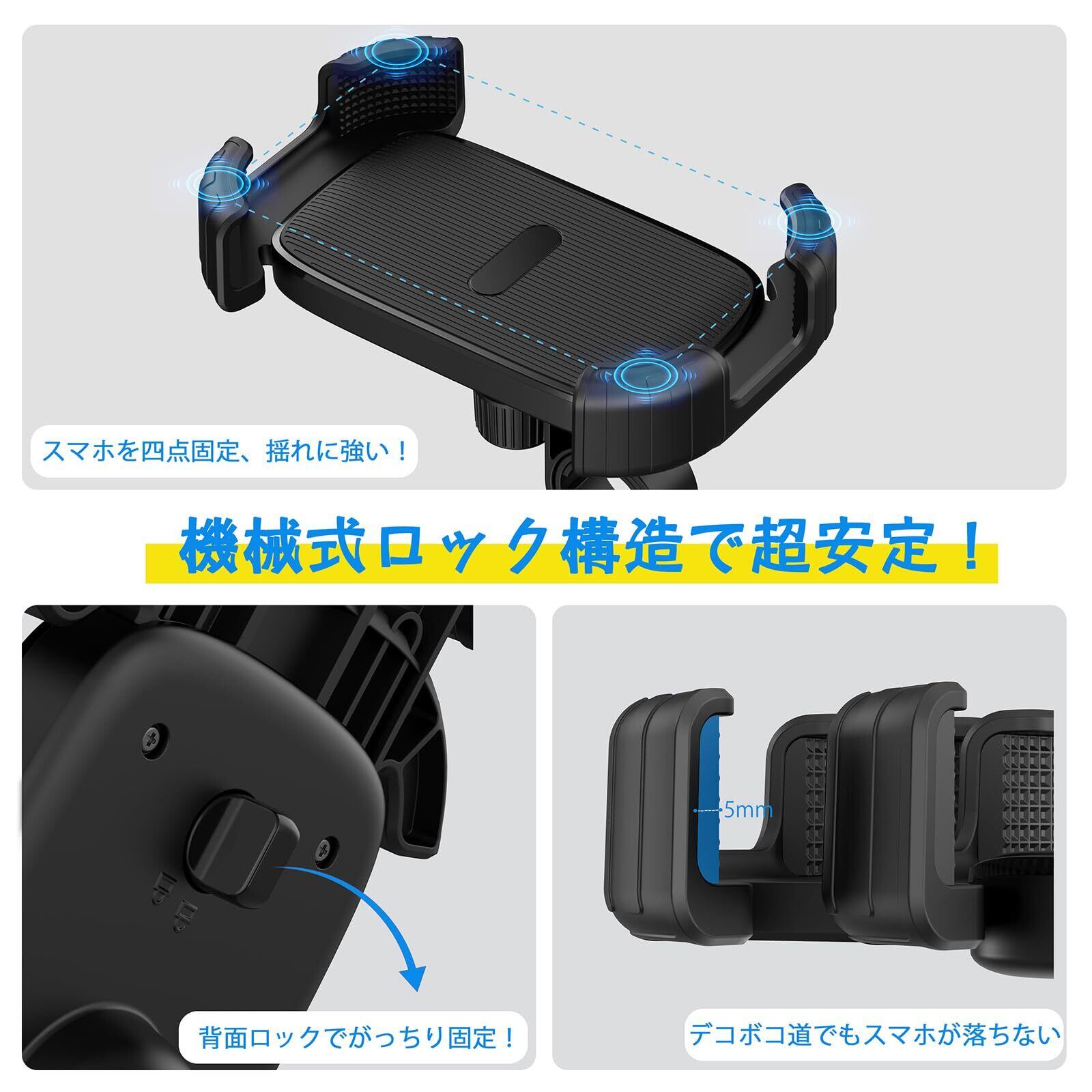 自転車 スマホ ホルダー スタンド 簡単取り付け ワンタッチ 自由調節 360度回転 振動吸収 耐久性 携帯ホルダー 防振 20mm~30mmハンドル スマホ固定 ロードバイク オートバイ バイク用 iPhone android 4.5~7.2インチに対応 ブラック