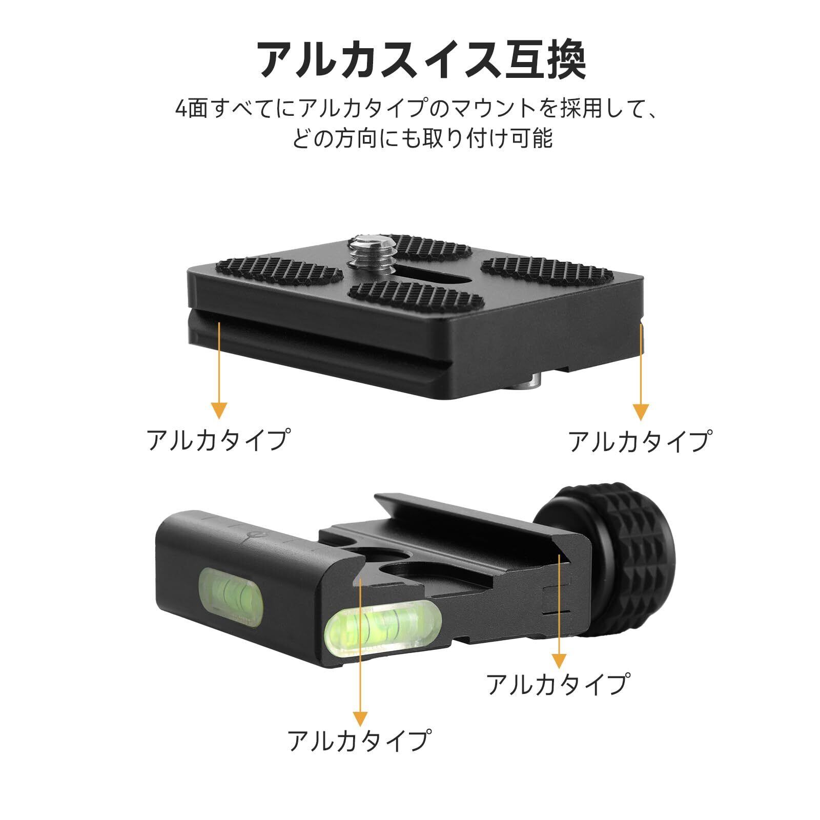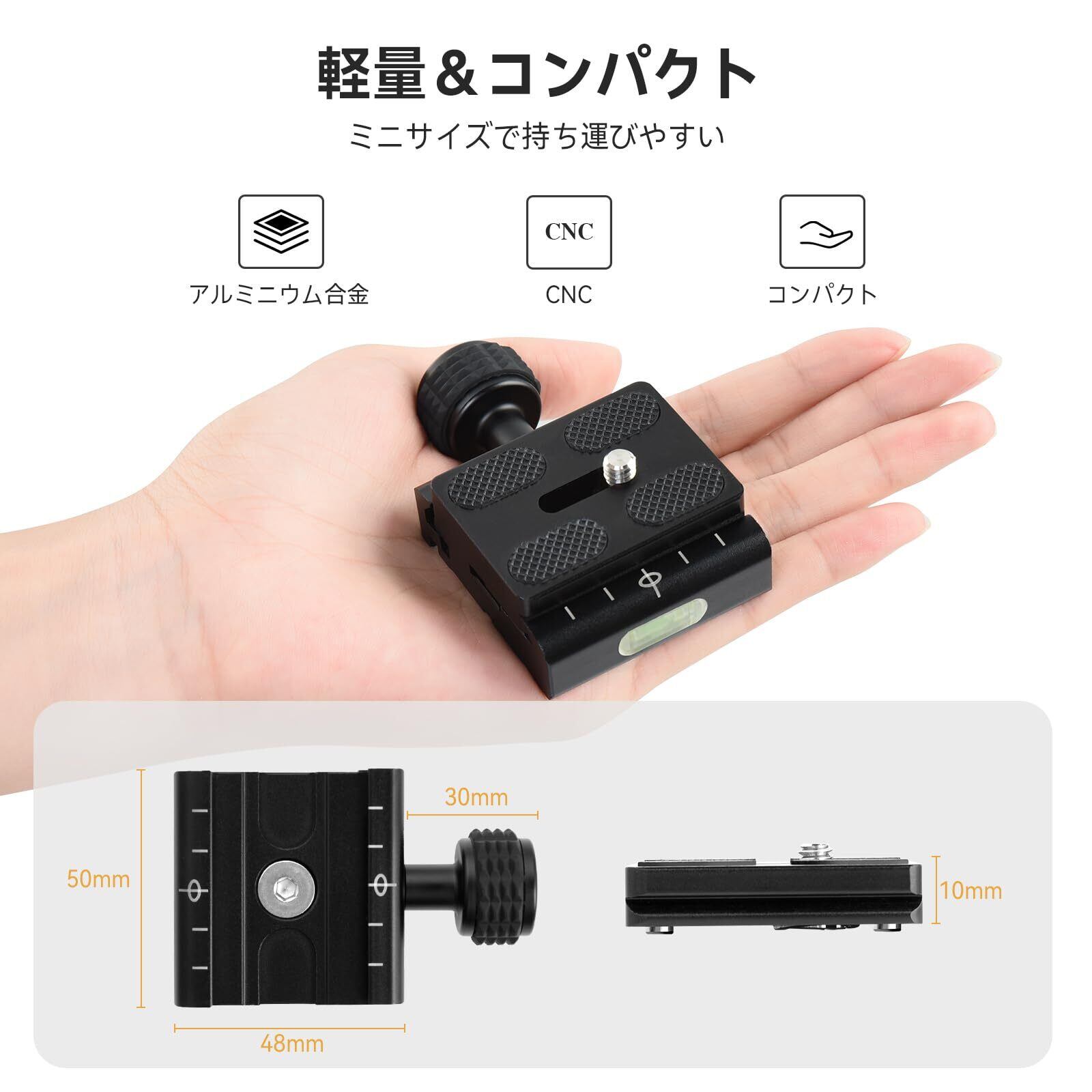 UTEBIT 50mm クイックリリースクランプ クイックリリースプレートセット アルカスイス互換 標準1/4ネジ付 アルカスイス互換プレート 三つの水準器付き アルカスイス プレート 三脚/ボールヘッド/雲台などに対応 アルカスイス 互換 クランプ クイックシュー Quick Release Plate