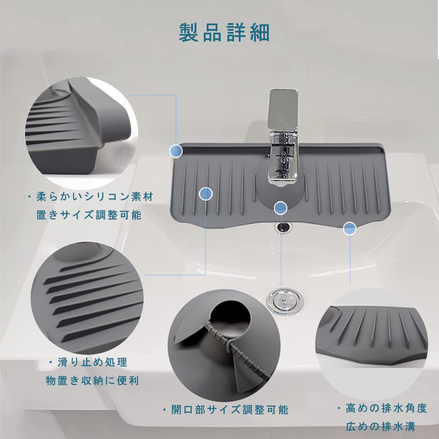 蛇口水切りマット シリコン 蛇口排水マット 蛇口カバー付き 水汚れ防止 速乾 抗菌 防カビ 乾燥用マット 滑り止め キッチン バスルーム 洗面台 トレイ用排水マット (グレー)