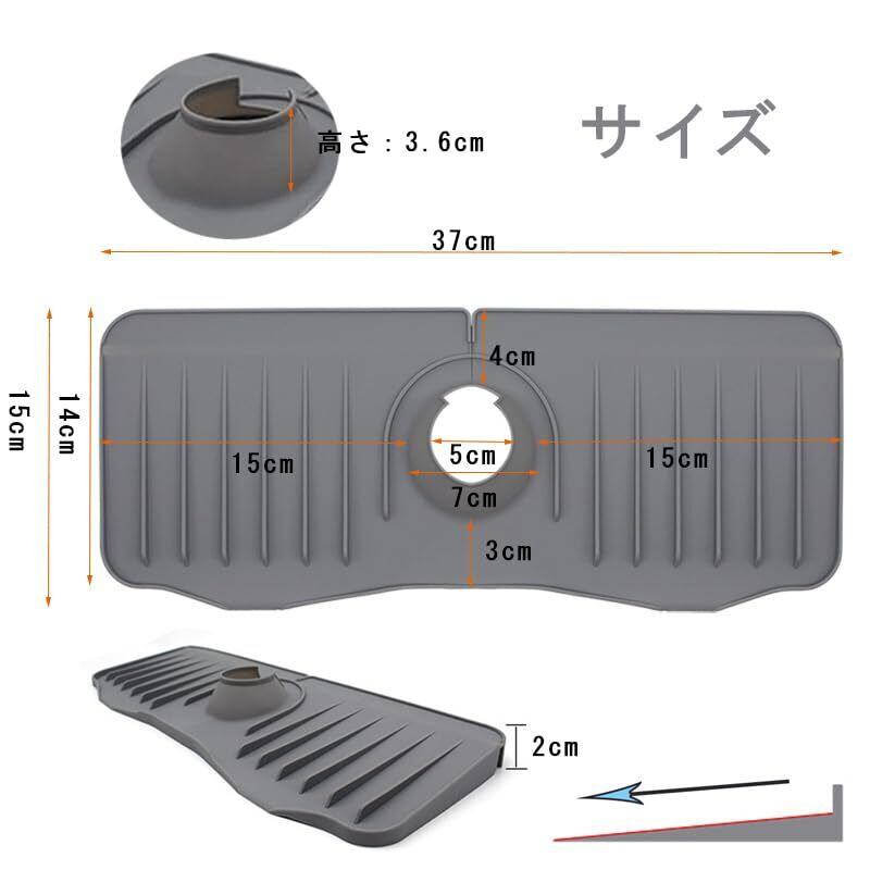 製品仕様:サイズ:約37*14*2cm;直径6.5cmまでの各種片口水栓に対応します。 センターホールは水道管のサイズに合わせて自由にカットでき、ほとんどの洗面台に対応します。使用しないときは折りたたんで収納可能、場所をとりません