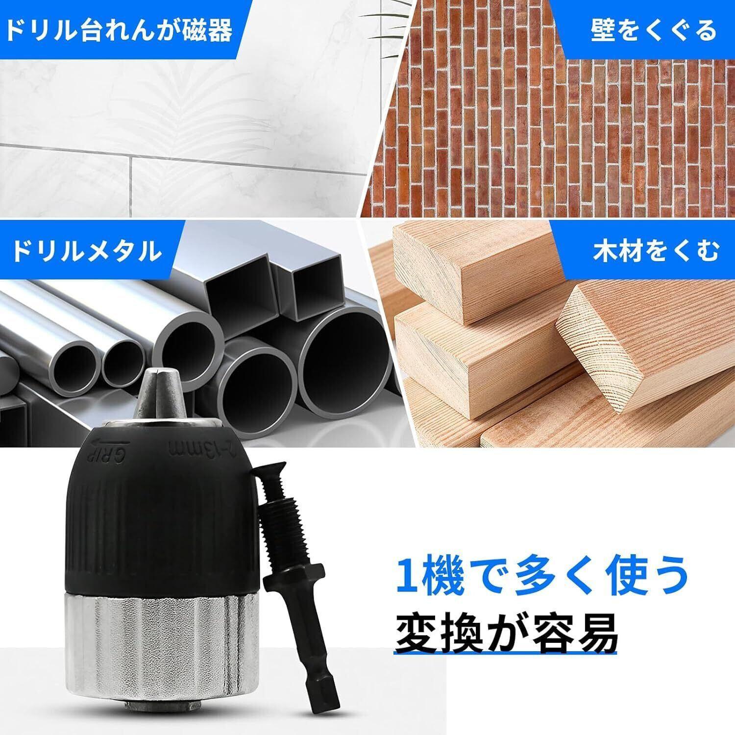 【広い使用範囲】ドリルチャック取付可能サイズ:2.0~13mm、良質な高炭素鋼を採用して、高い硬度と比較的に良い耐摩耗性を持ち、丈夫で耐久性があり、使用寿命が長いです。