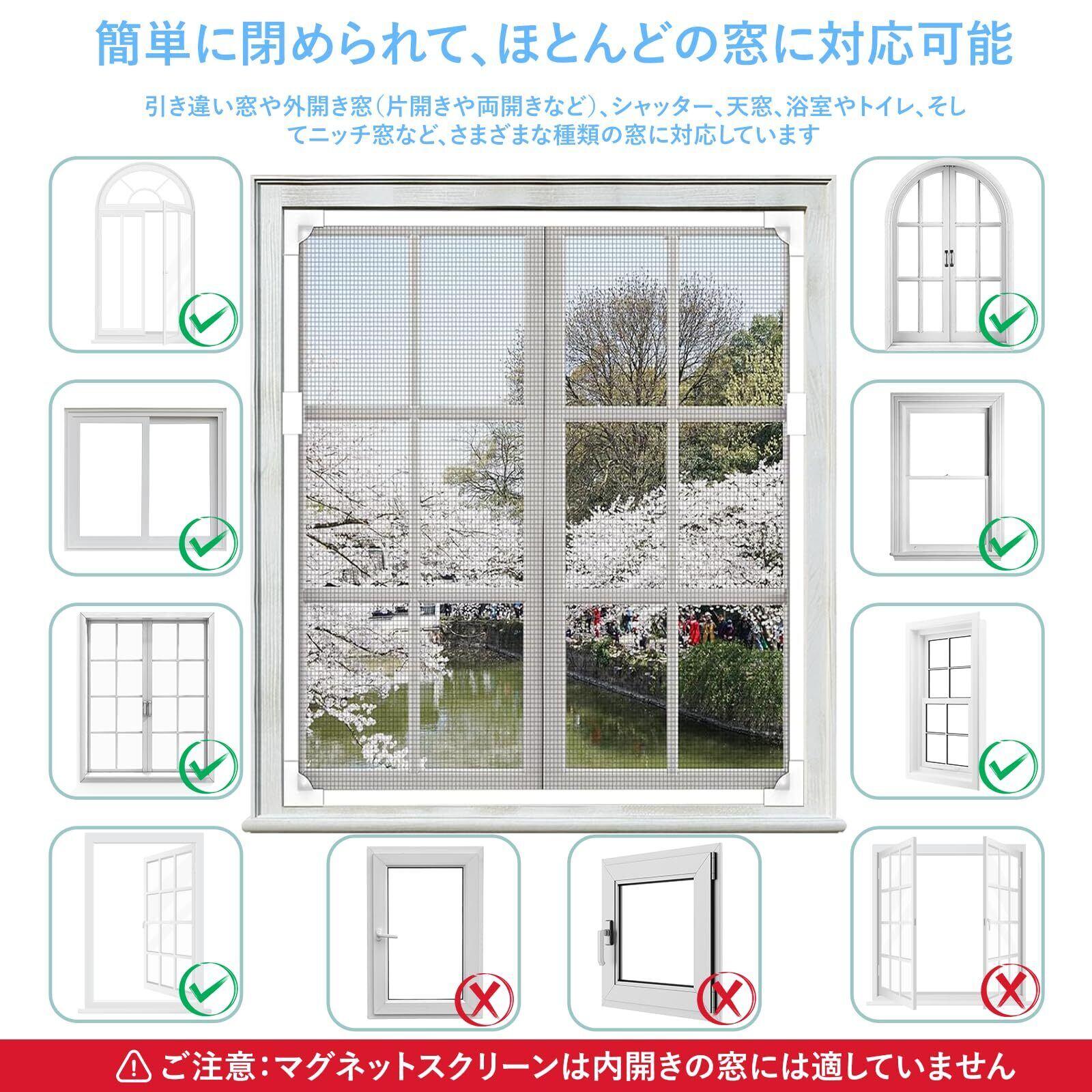【サイズ調整可能】サイズは120cm×120cmで、引き違い窓、上げ下げ窓、開き窓に最適です。必要に応じて、簡単にカットしてサイズ調整できるため、どんな窓にもぴったりフィットします。自宅の窓に合わせたオーダーメイド設置が可能で、非常に低コストで実現できます。