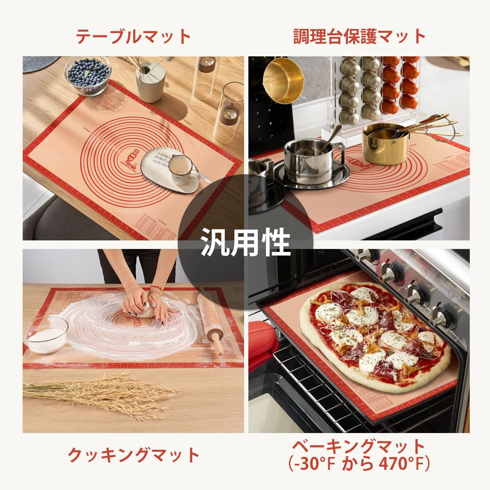 汎用性:オーブン/電子レンジ/食器洗い機/冷凍庫に安全です:これは最高の食品グレードの液体シリコーンから作られており、-40℃から250℃までの範囲の温度で使用できます。 菓子、マカロン、ペストリー、クッキー、ロールパン、パンを焼くのに理想的です。 テーブル/カウンタートップマットにも適します。