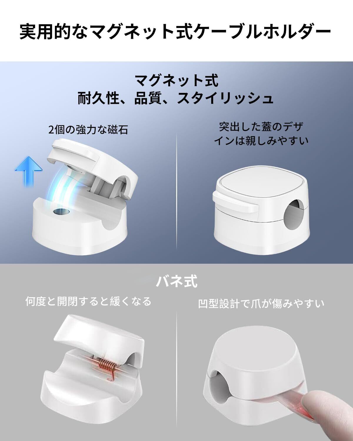 【新着商品】HOWJIM 6個セット バネ式ケーブルホルダー 片手で簡単操作 ケーブルクリップ マグネット アクリル粘着パッド ABS樹脂 USB配線収納 垂直 貼付 7.5mm幅スロット 磁石 卓上ケーブル整理 マグネットケーブルホルダー デスクトップ、車、壁、寝室 Type-C充電ケーブル 電源ケーブル マウスケーブル キーボードケーブル ヘッドフォンケーブルなど様々なケーブルに対応 ホワイト | allstore3