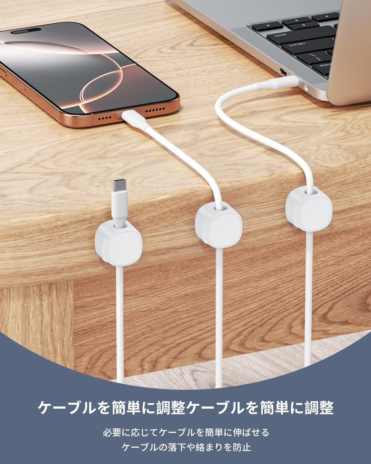 【革新的な磁気設計、片手操作】HOWJIMマグネットケーブルホルダー、シンプルなマットな質感、片手操作のための磁気閉鎖、ケーブルを吸着しやすい。 適度な磁気ロック、引っ張ると簡単に落ちない、磁力は耐久性と安定性があり、数え切れないほどのスイッチは以前と変わりません。